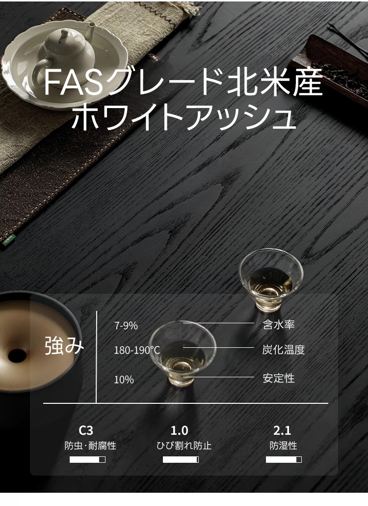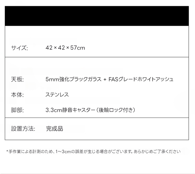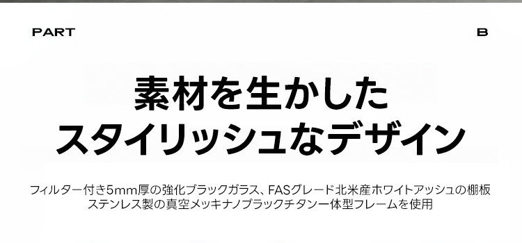 - 【高級素材と洗練されたデザイン】天板には5mm厚の強化ブラックガラスを使用し、棚板にはFASグレードのホワイトアッシュ材を採用。ステンレス製の一体成形カーブフレームが、光沢のある美しいデザインを実現しています。
