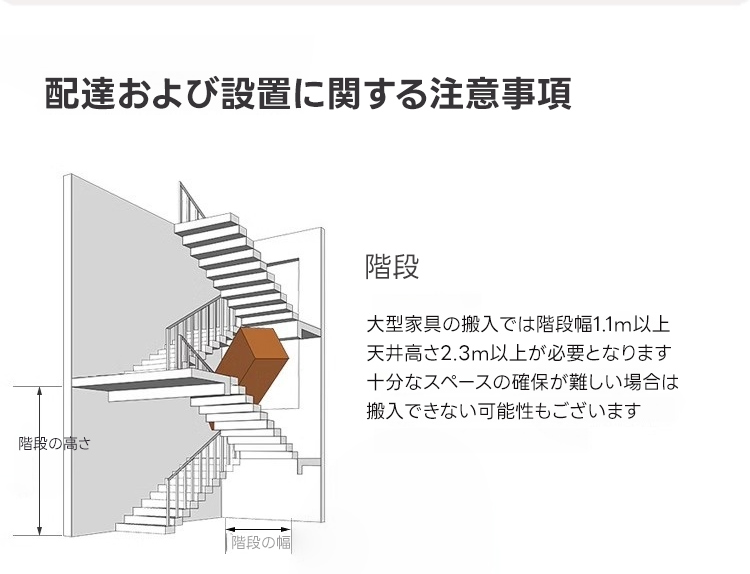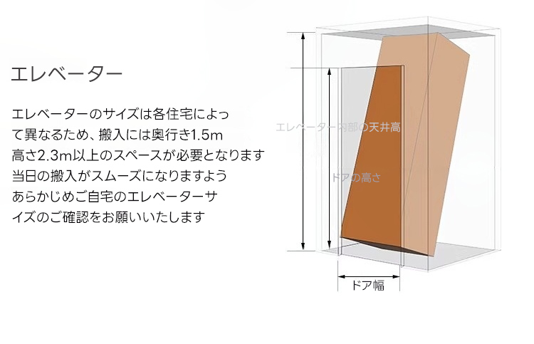 ※搬入不可等の理由による注文キャンセルは、ご返送にかかる費用をお客様にご請求いたします。ご注文前に大型家具の搬入方法をご確認ください。