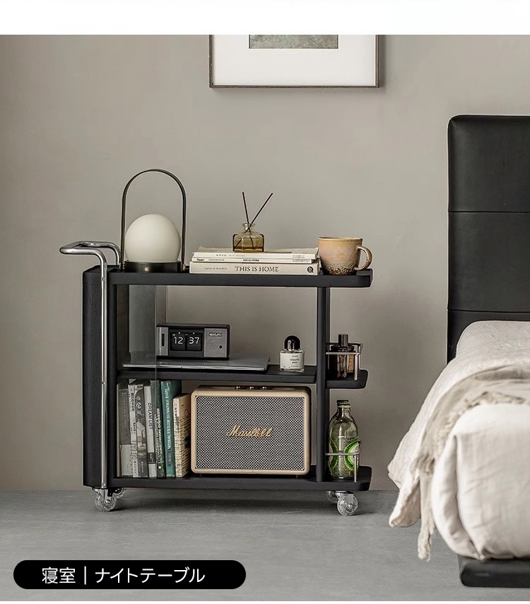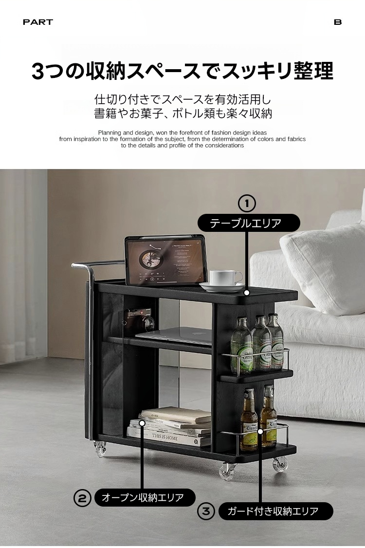 - 【多機能収納と移動のしやすさ】このサイドワゴンは、3つの収納スペースを備えており、書籍やお菓子、ボトル類を簡単に整理できます。静音キャスター付きで、360°回転可能なロック機能を備え、スムーズに移動可能です。