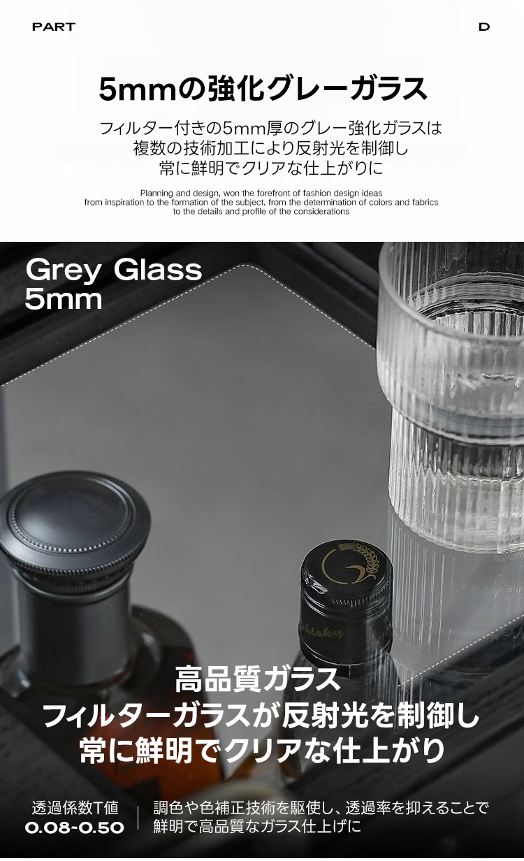 - 【高品質素材とデザイン】FASグレードの北米産ホワイトアッシュ材を使用し、耐久性と美しい仕上がりを実現しています。5mm厚の強化グレーガラスを採用し、反射光を抑えたクリアな仕上がりです。