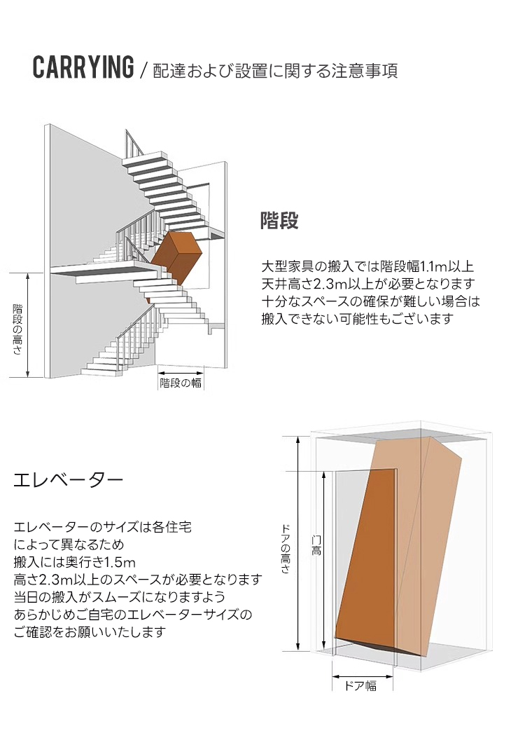 ※搬入不可等の理由による注文キャンセルは、ご返送にかかる費用をお客様にご請求いたします。ご注文前に大型家具の搬入方法をご確認ください。