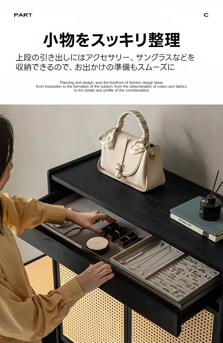 - 【ユーザーに優しい設計】:上段の引き出しにはアクセサリーや小物を整理でき、出かける準備もスムーズです。さらに、傘を掛けられるフックが付いており、玄関周りをすっきりと保てます。