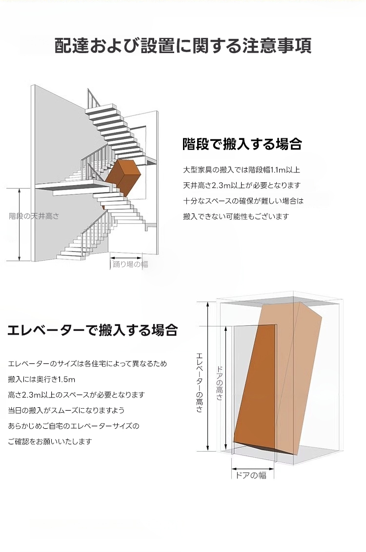 ※搬入不可等の理由による注文キャンセルは、ご返送にかかる費用をお客様にご請求いたします。ご注文前に大型家具の搬入方法をご確認ください。