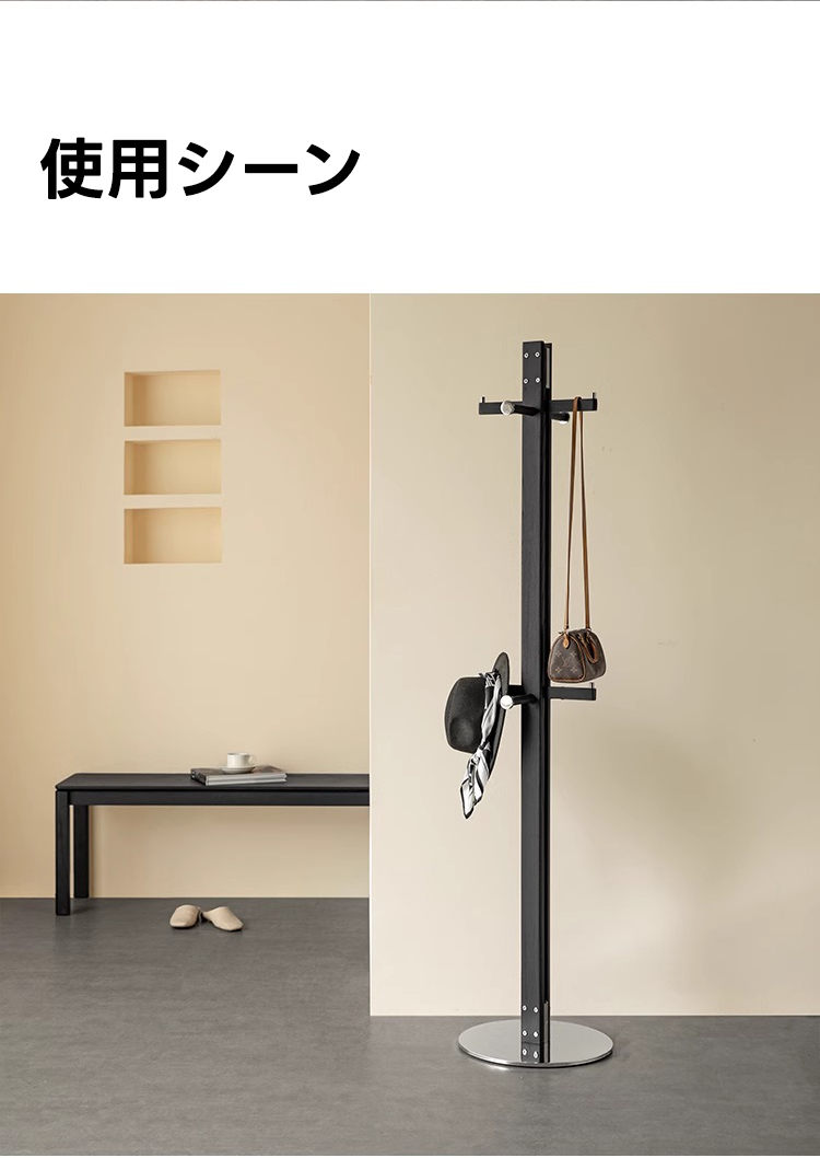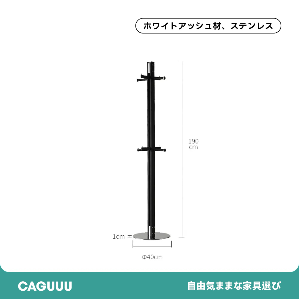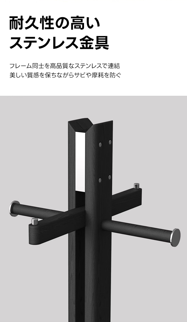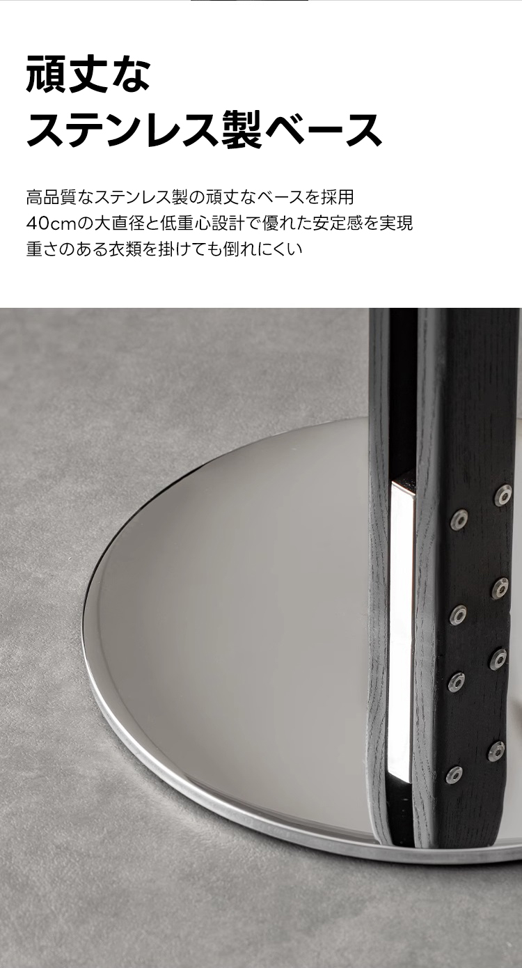 - 【高品質な素材とデザイン】北米産FASグレードのホワイトアッシュ材を使用し、耐久性と美しさを兼ね備えています。頑丈なステンレス製ベースは安定感があり、重い衣類をかけても倒れにくい設計です。