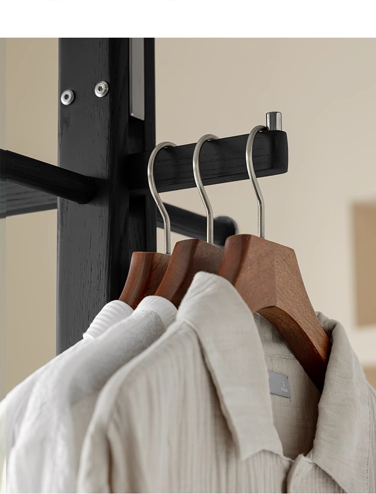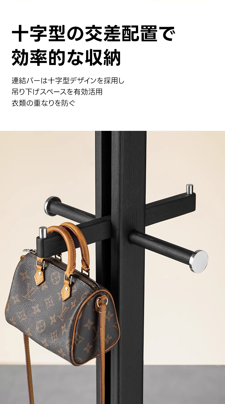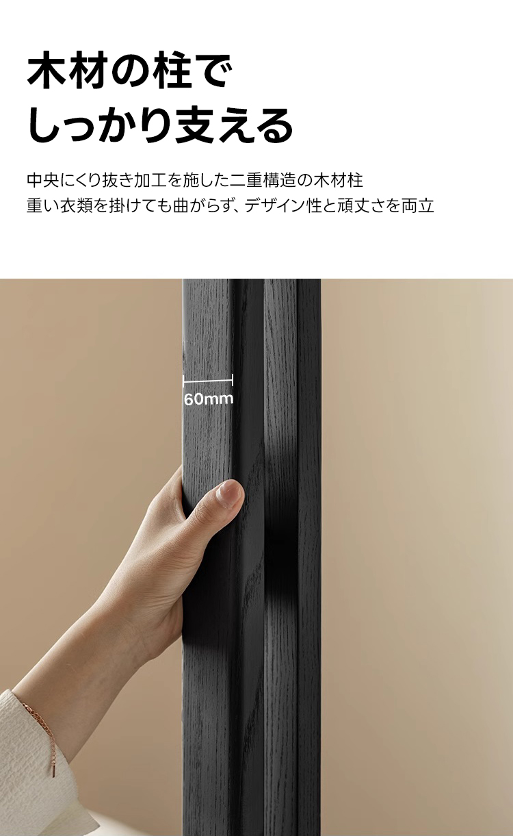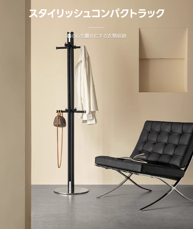 - 【高品質な素材とデザイン】北米産FASグレードのホワイトアッシュ材を使用し、耐久性と美しさを兼ね備えています。頑丈なステンレス製ベースは安定感があり、重い衣類をかけても倒れにくい設計です。