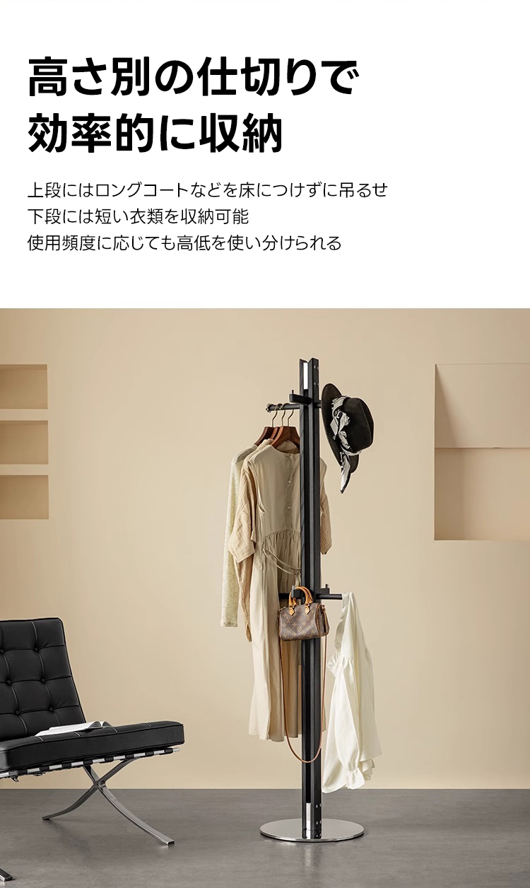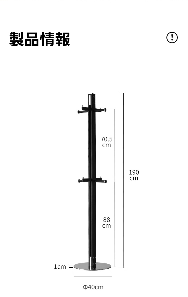 - 【効率的な収納】このスタイリッシュコンパクトラックは、限られたスペースを有効活用するためにデザインされています。直径40cmの円形ベースと高さ190cmの設計により、ロングコートや短い衣類を効率的に収納できます。
