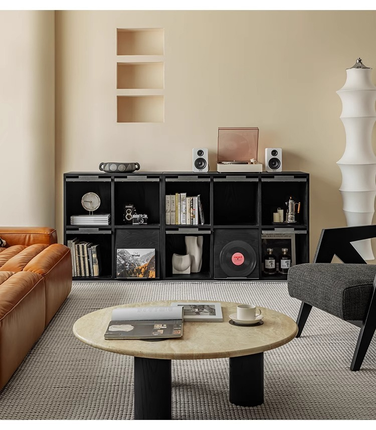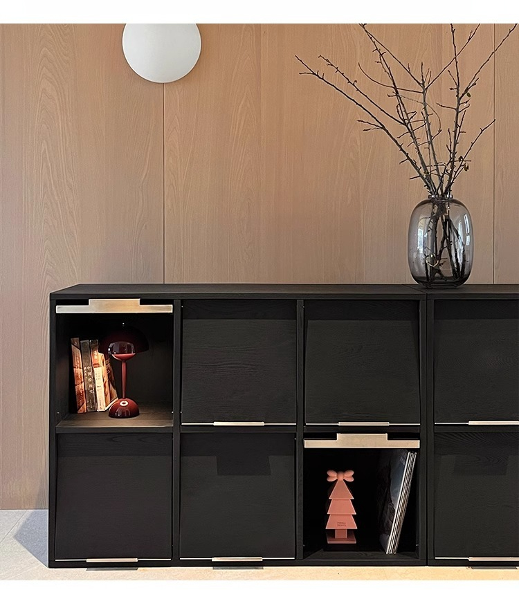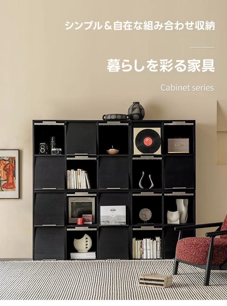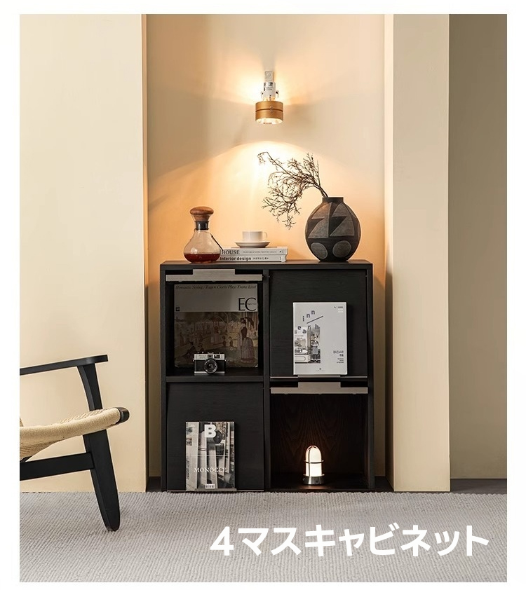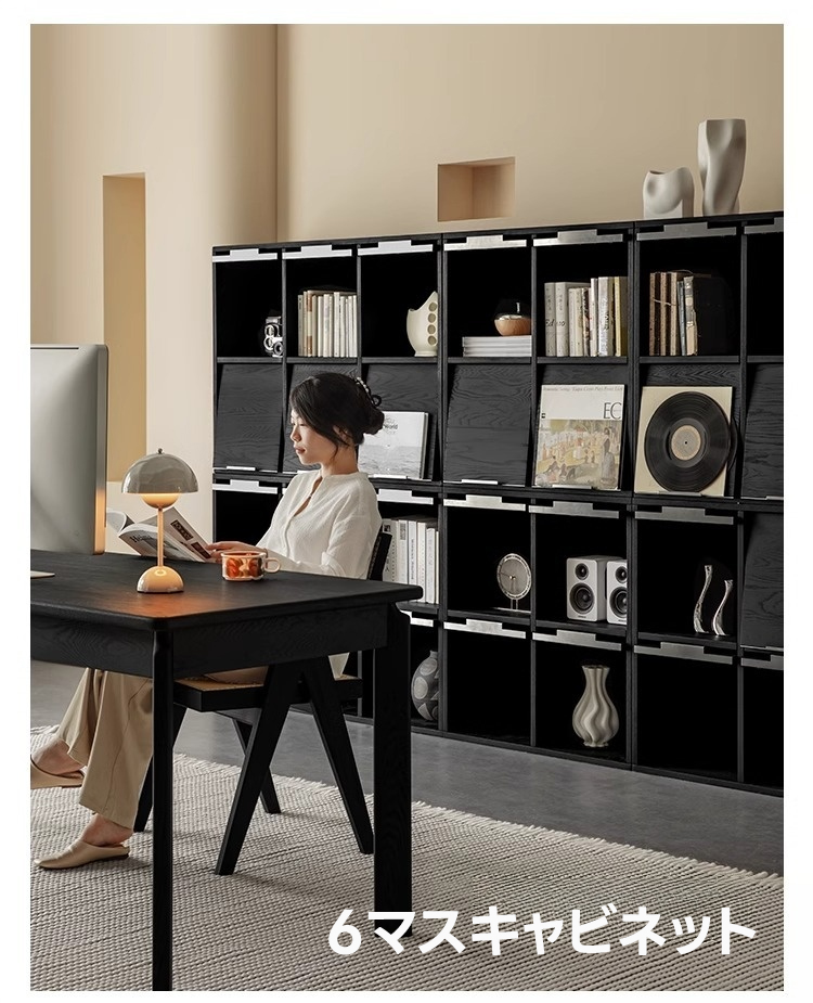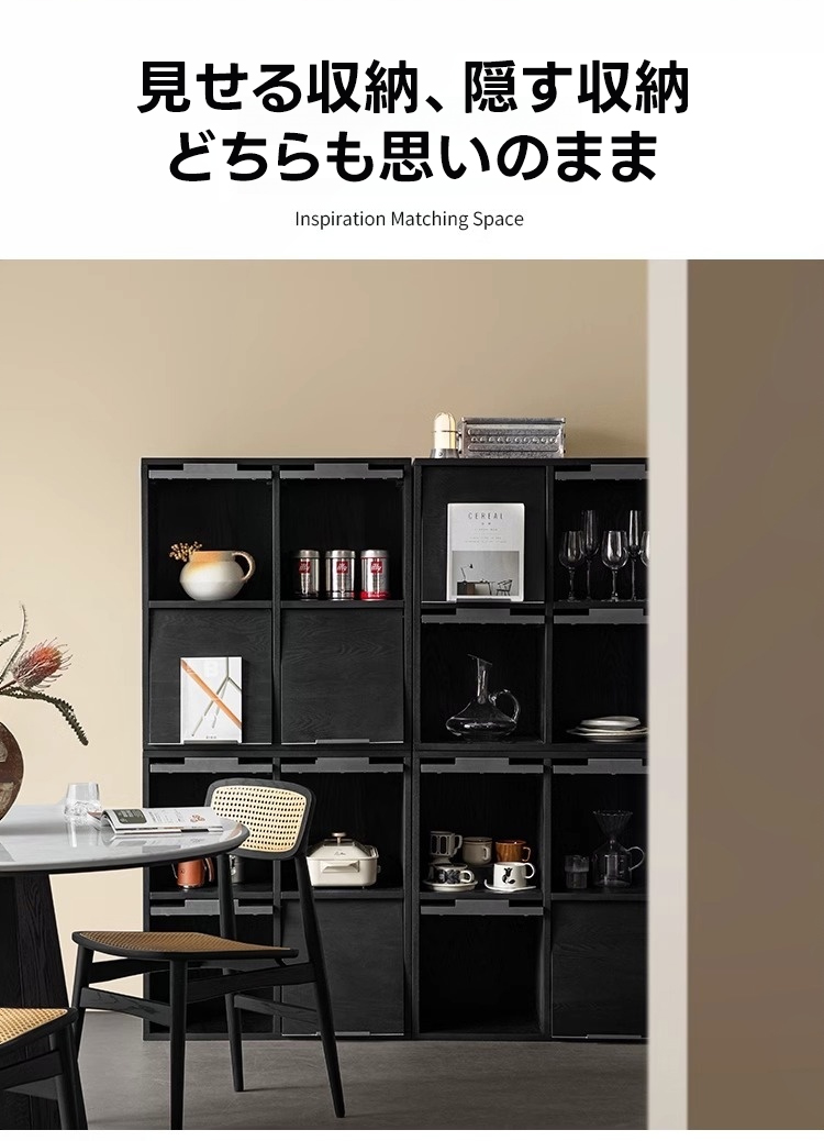 - 【多機能収納キャビネット】:このブラックマルチキャビネットは、ホワイトアッシュ材を使用し、シンプルモダンなデザインが特徴です。リビングや一人暮らしの空間にぴったりで、見せる収納と隠す収納の両方を実現します。選べるサイズと柔軟なデザインで、どんな空間にもフィットします。