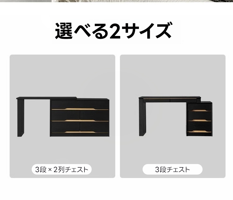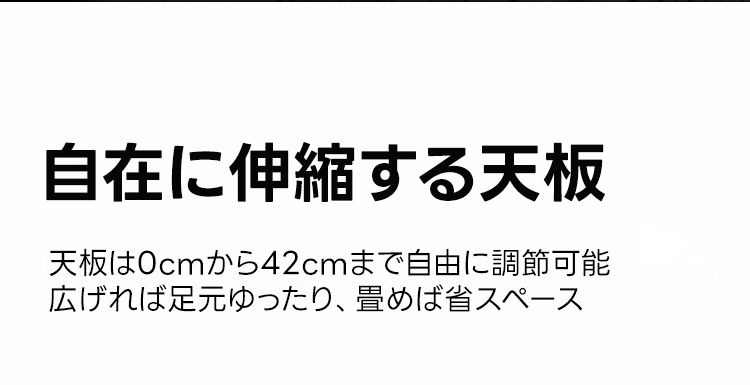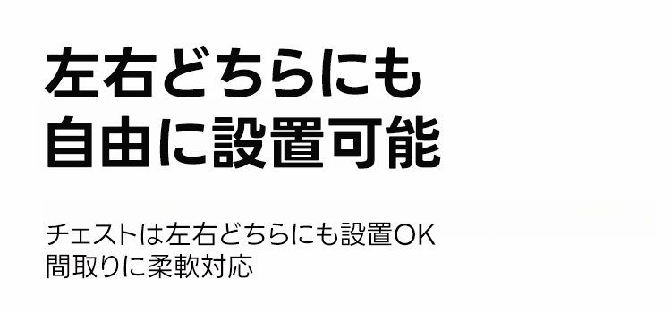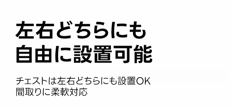 - 【柔軟な配置】チェストは左右どちらにも設置可能で、お部屋のレイアウトに合わせて自由に配置できます。天板は0cmから42cmまで調整可能で、スペースに応じて使い分けができます。