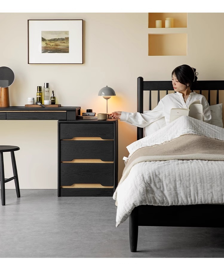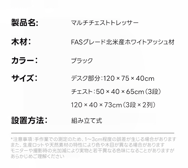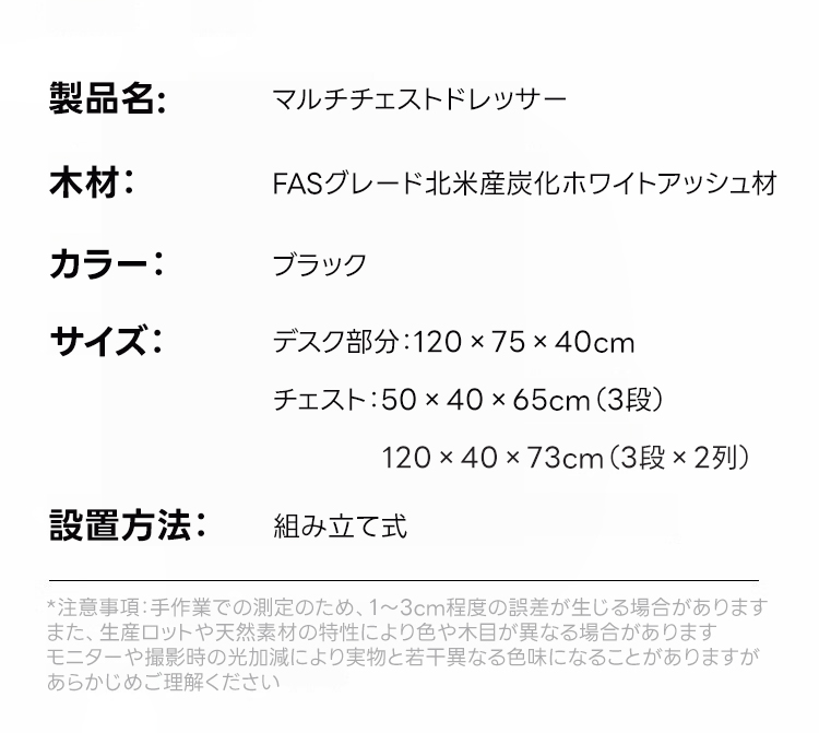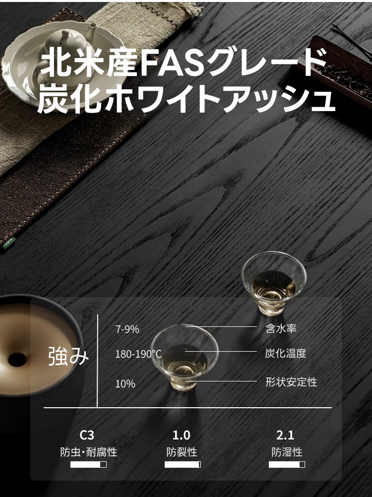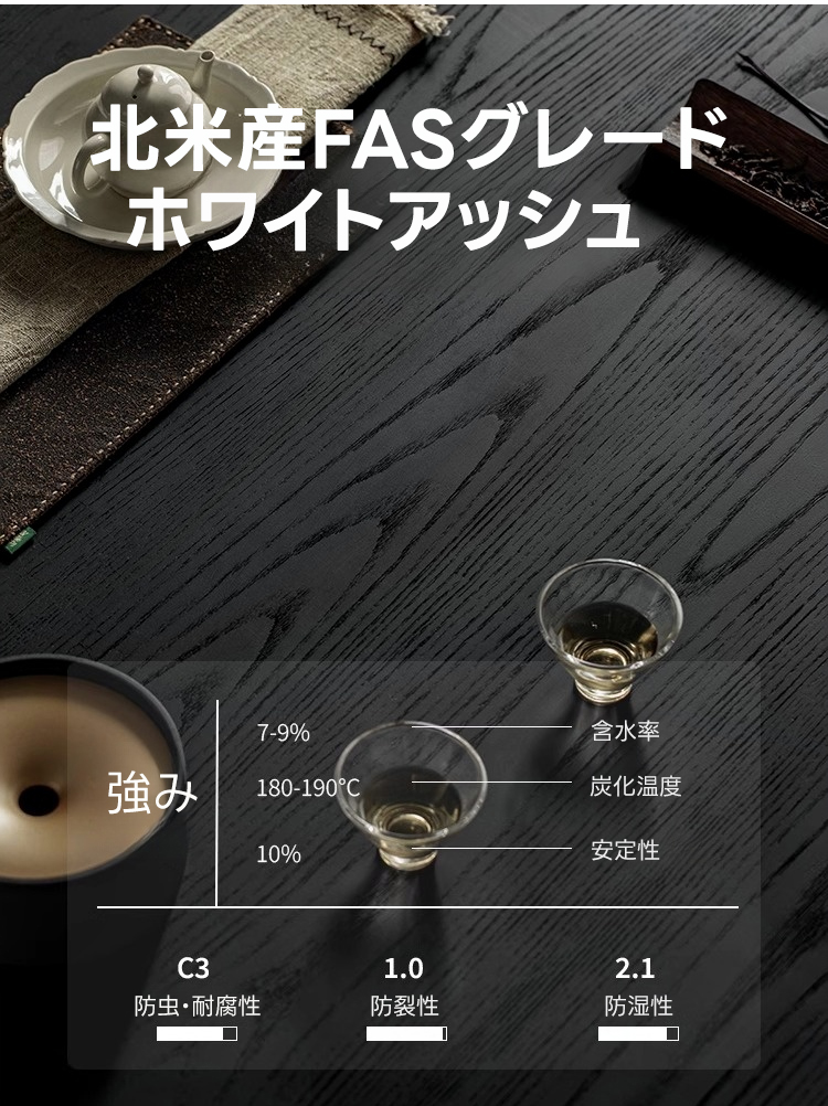 - 【高品質な素材】北米産FASグレードのホワイトアッシュ材を使用し、耐久性と美しい木目が魅力です。ブラックカラーが落ち着いた印象を与え、どんなインテリアにもマッチします。