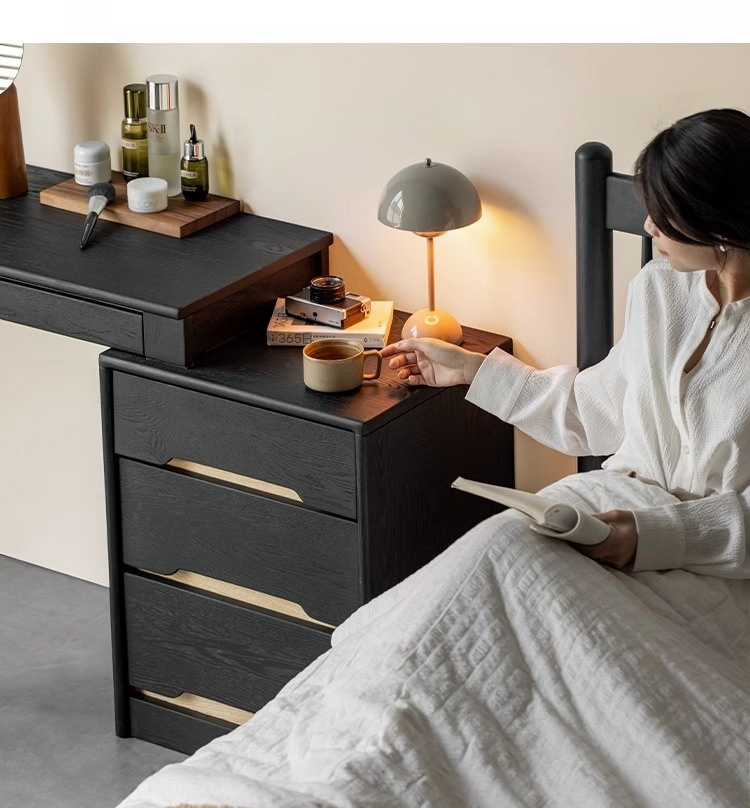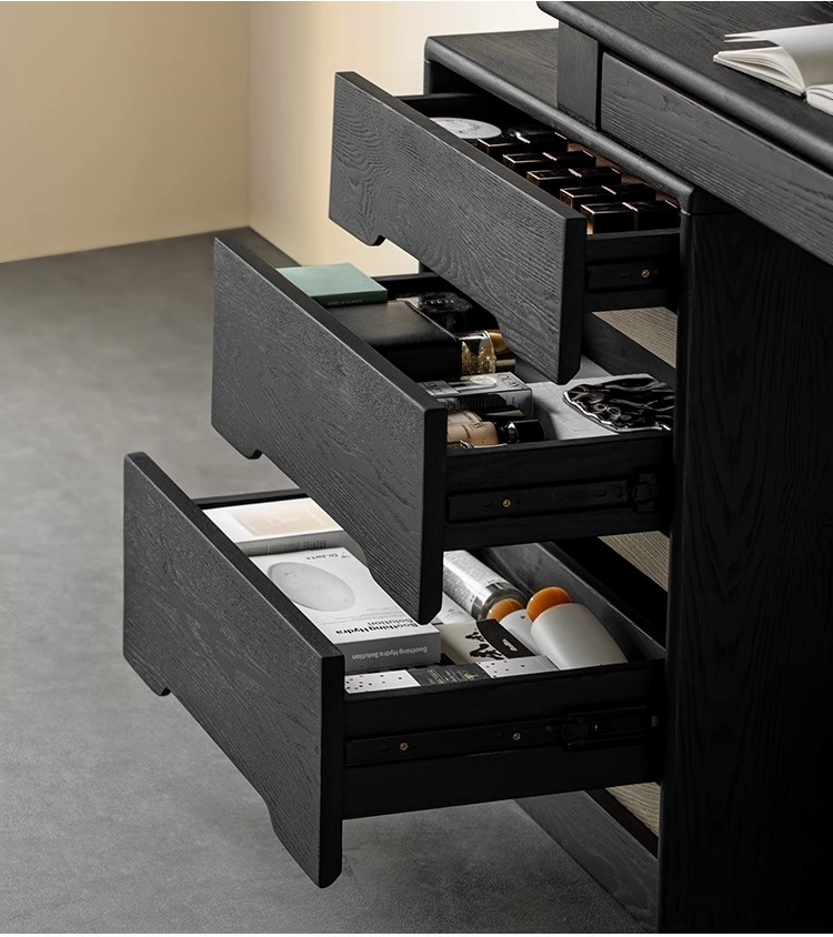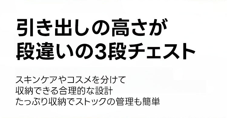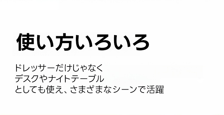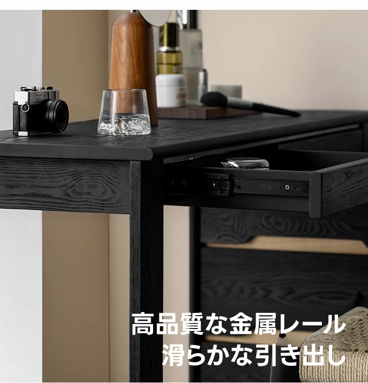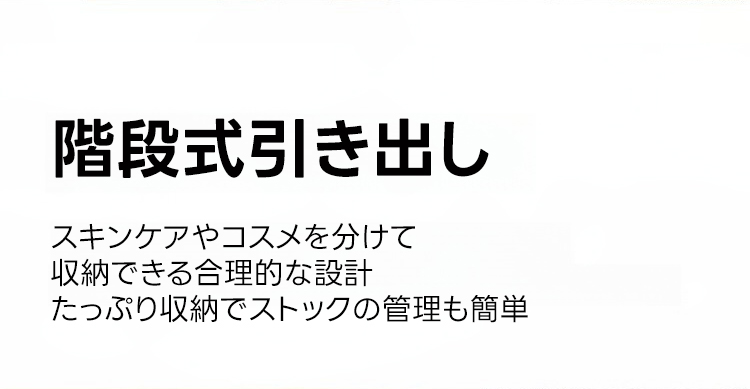 - 【快適な使用体験】金属レールを使用した滑らかな引き出しは、スキンケア用品やコスメを整理整頓しやすい設計です。ナチュラルな木目調とツートーンのコントラストが、飽きのこないデザインを演出します。