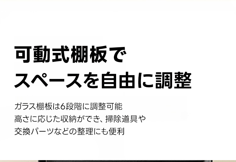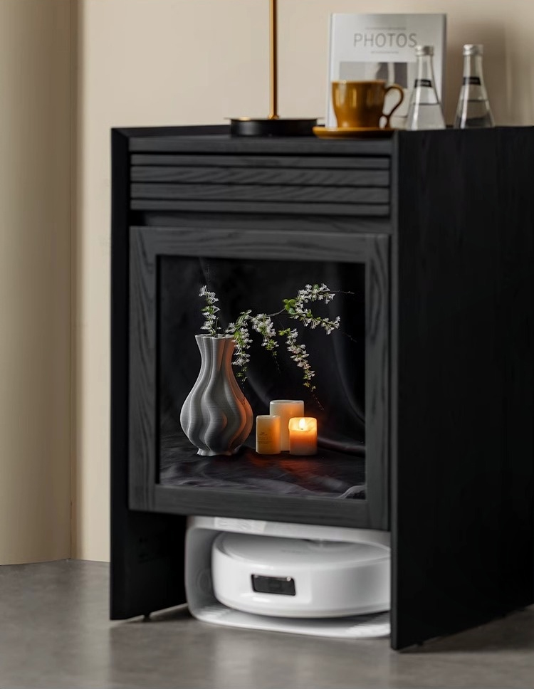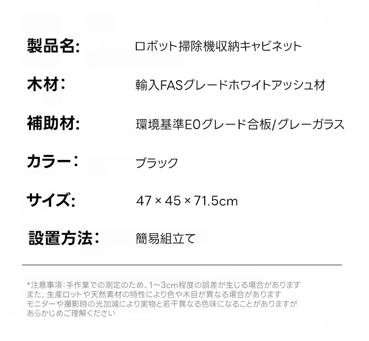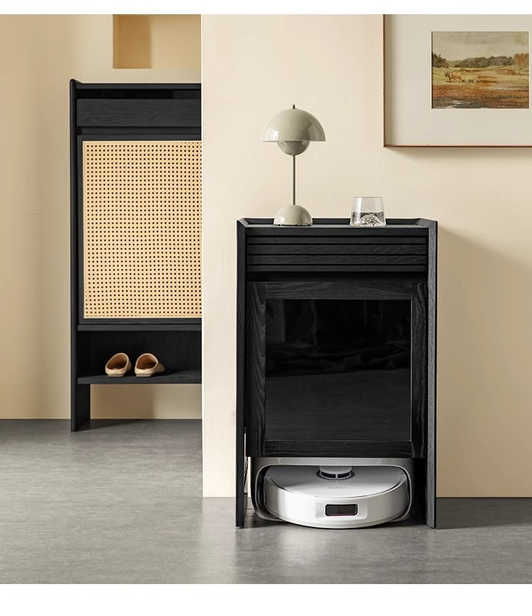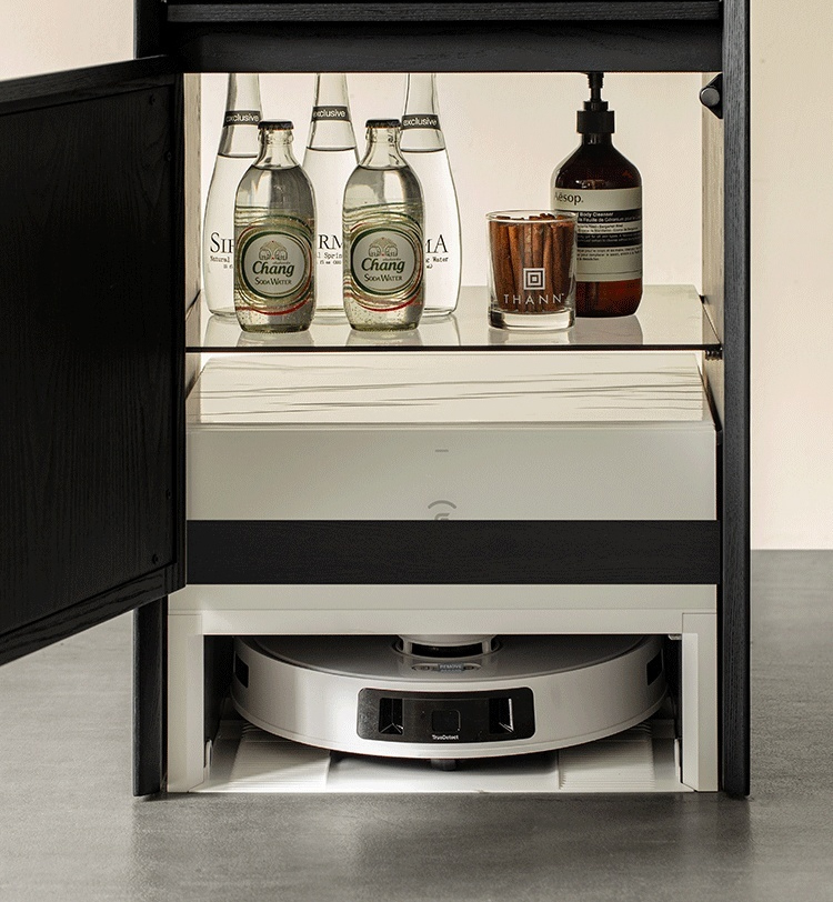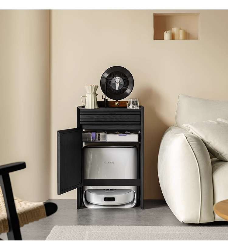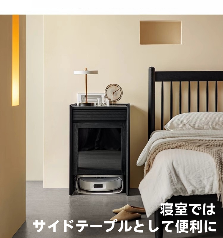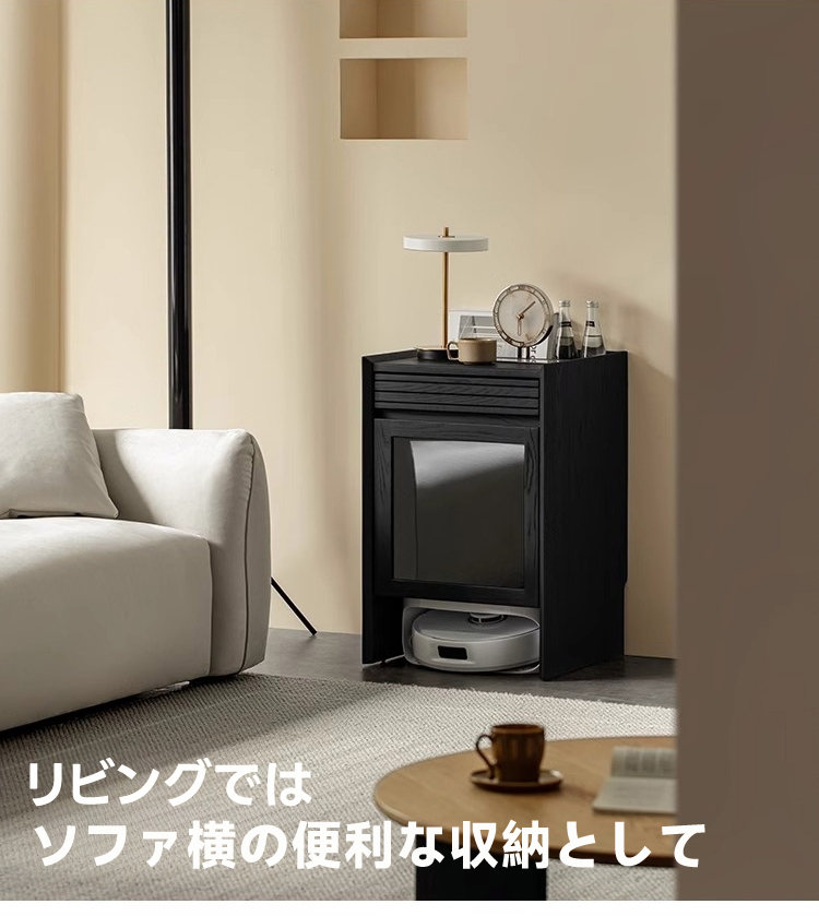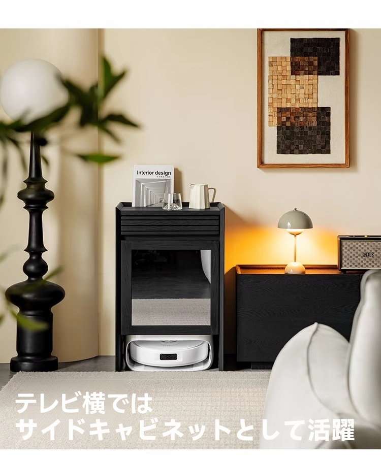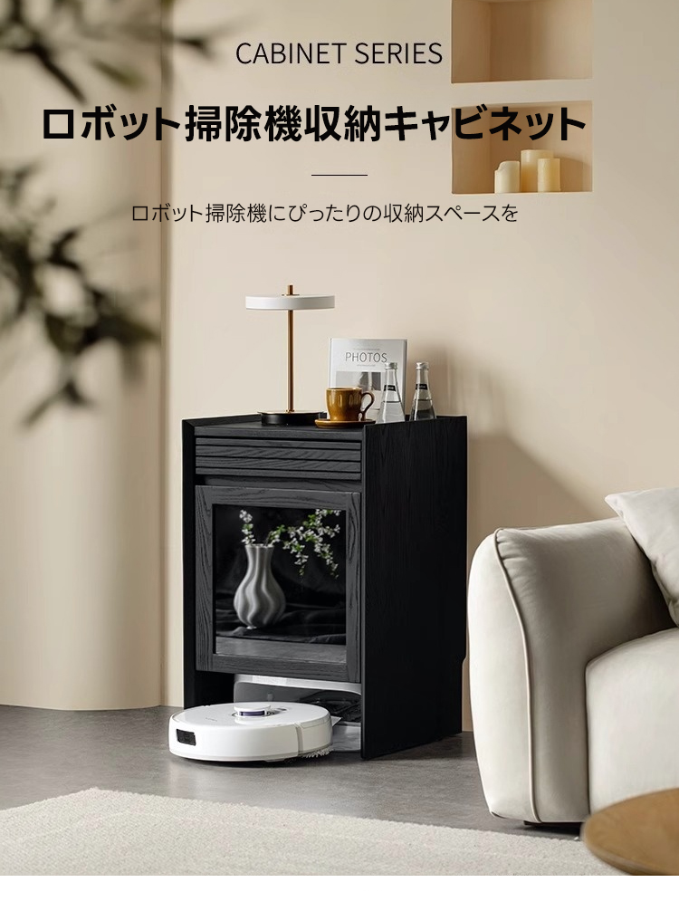 - 【多機能収納スペース】:ロボット掃除機の収納に最適なスペースを持つこのキャビネットは、リビングや寝室など様々な場所で活躍します。可動式棚板により、掃除道具や交換パーツの整理も簡単です。