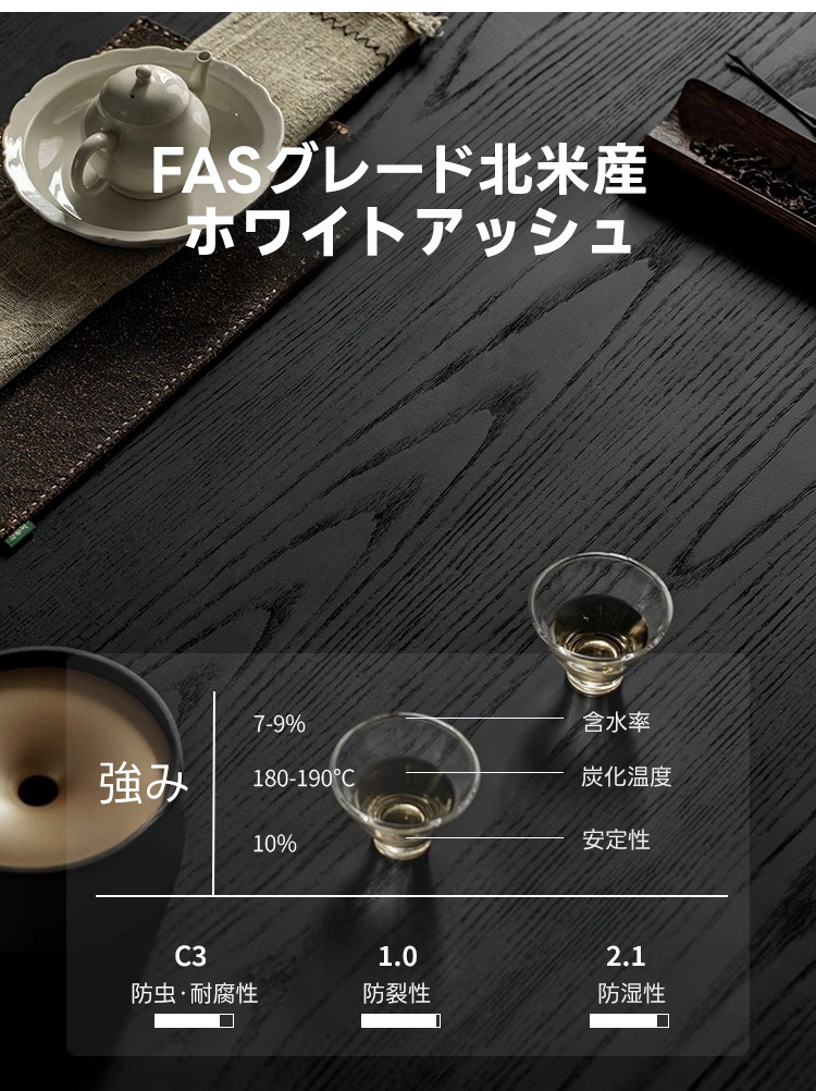 - 【高級素材使用】:FASグレードのホワイトアッシュ材を使用しており、耐久性が高く長く使用できます。環境基準EOグレードの合板とグレーガラスが補助材として使用されています。