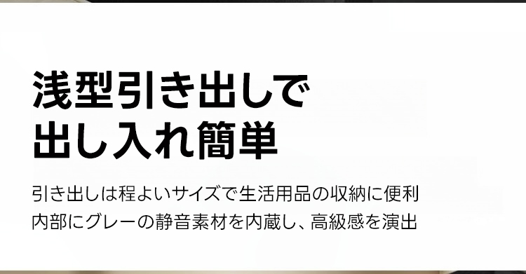 - 【省スペース設計】:壁にぴったり設置できるデザインで、限られたスペースを有効活用できます。浅型引き出しで生活用品の収納も簡単です。