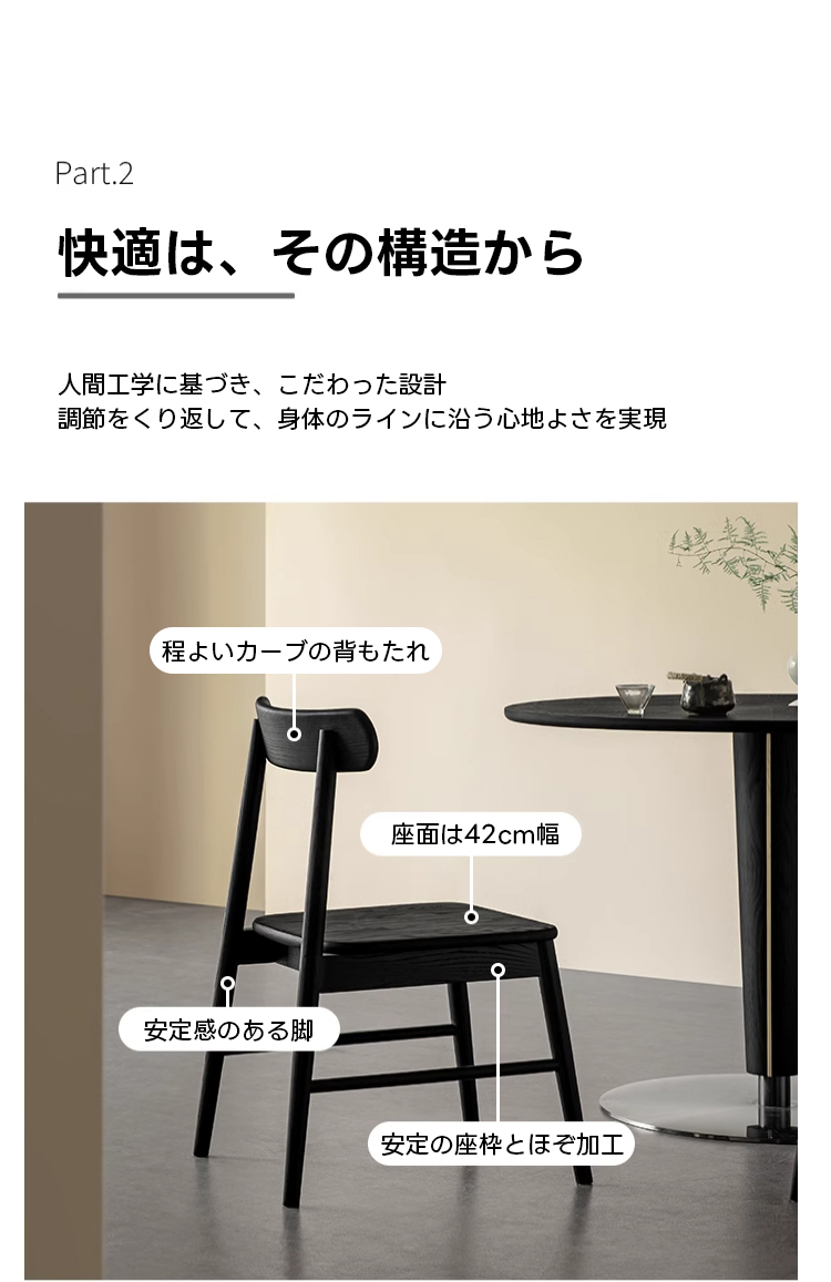 - 【快適な座り心地】:カーブデザインの背もたれが背中に心地よくフィットし、長時間座っても疲れにくい設計です。座面の幅は42cmで、ゆったりとした座り心地を提供します。
