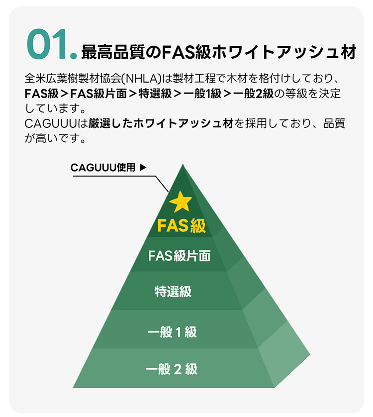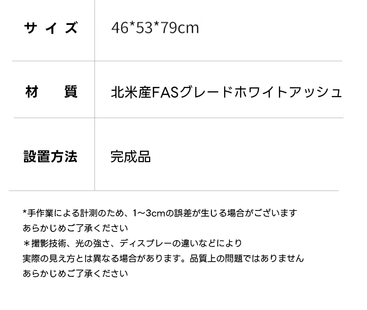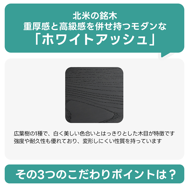 - 【高級感あふれるデザイン】:北米産FASグレードのホワイトアッシュ材を使用し、自然な色合いと美しい木目が特徴です。シンプルモダンなデザインで、どんなインテリアにもマッチします。