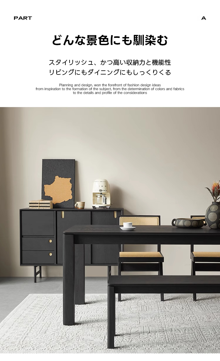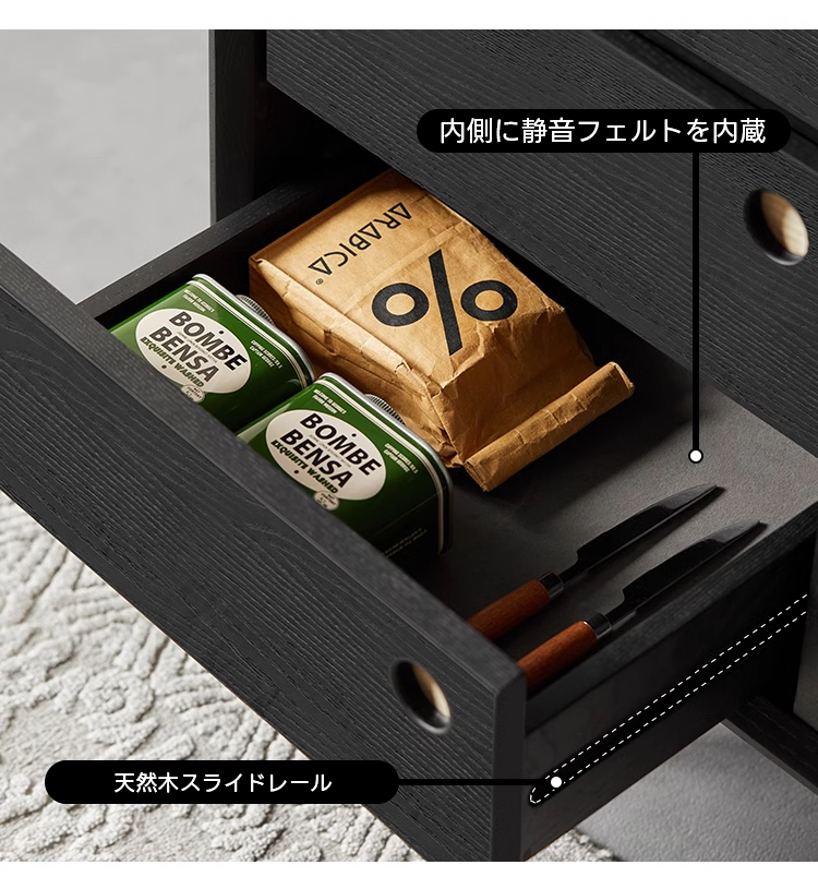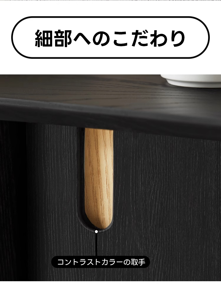 - 【高級素材とデザイン】:北米産FASグレードのホワイトアッシュ材を使用し、耐久性と美しい木目を兼ね備えています。ブラックのシックなカラーに、コントラストカラーの取手がアクセントとなり、スタイリッシュな印象を与えます。