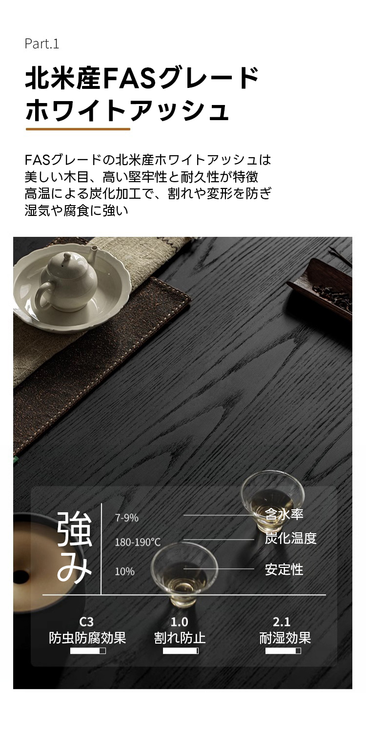 - 【高品質な素材とデザイン】:北米産FASグレードのホワイトアッシュ材を使用し、堅牢性と耐久性に優れています。角は丸みを帯びた仕上がりで、滑らかな手触りを実現。高級感のあるデザインで、どんな空間にも溶け込みます。