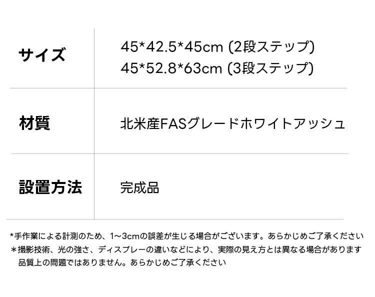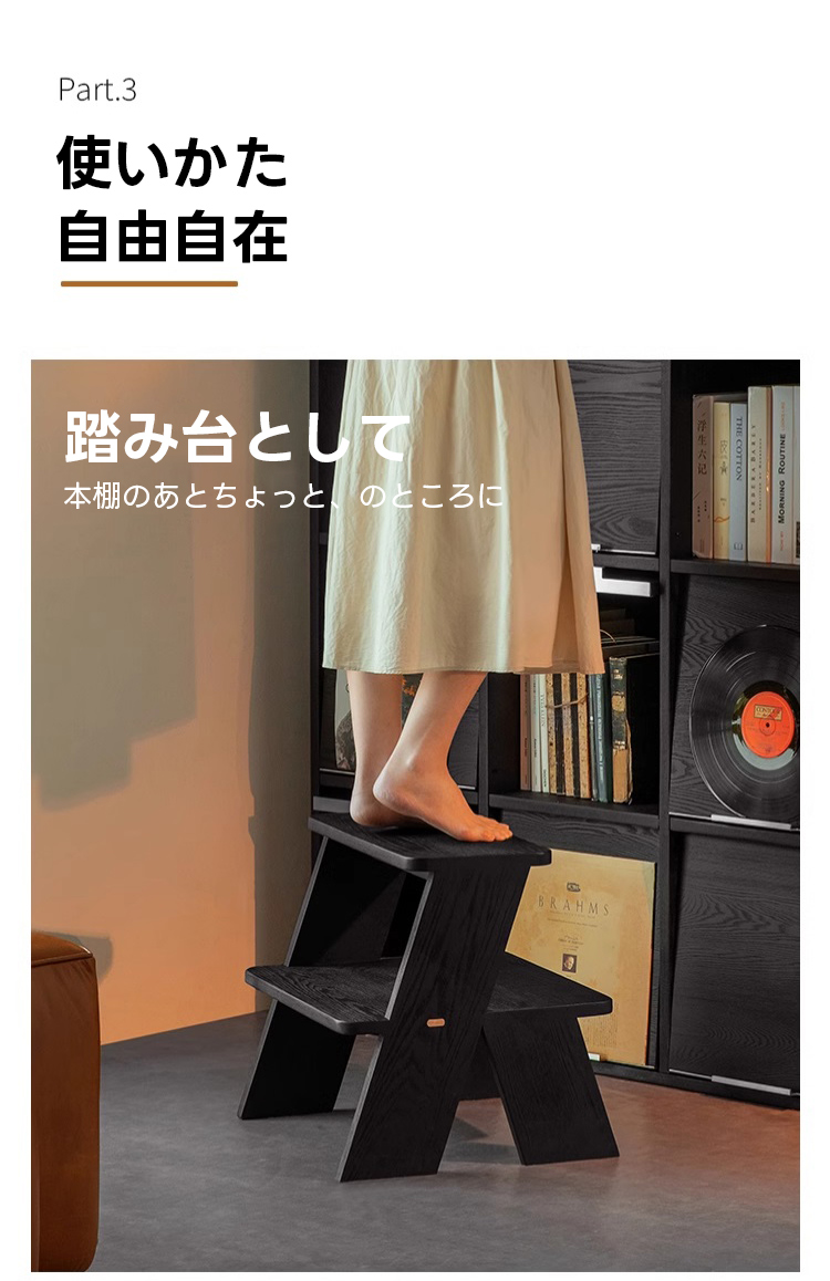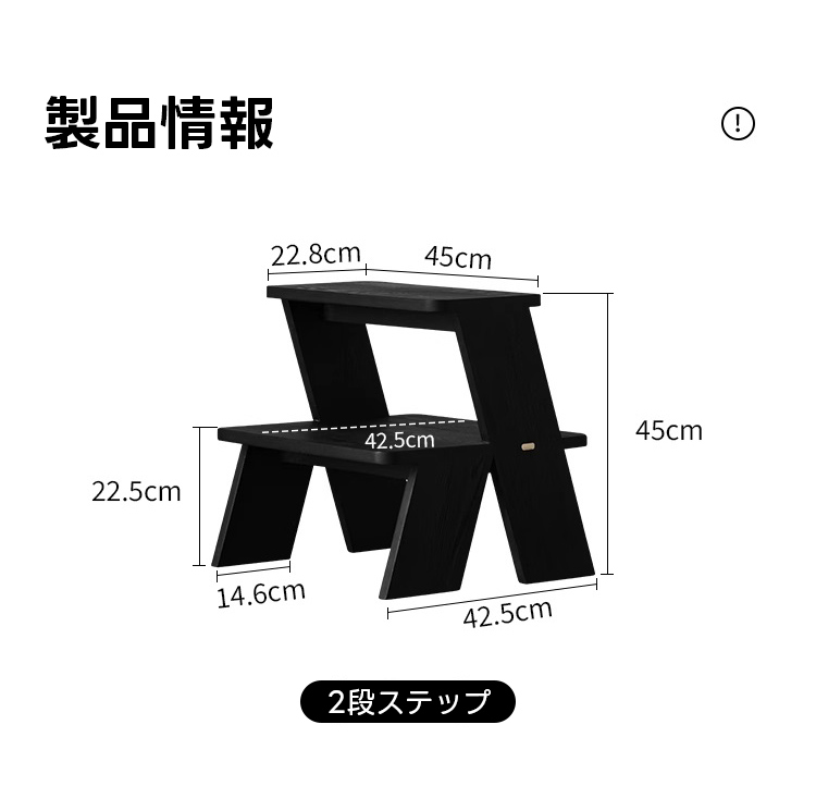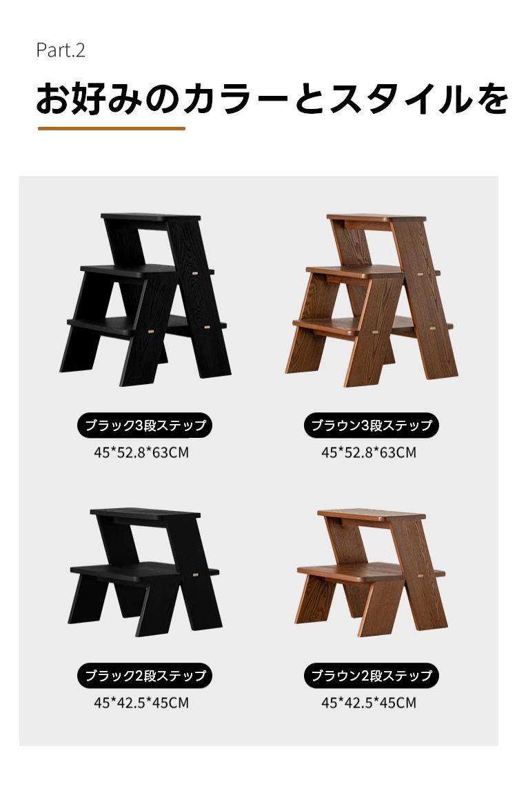 - 【快適な使用体験】:完成品としてお届けするため、面倒な組立作業は不要。2段ステップと3段ステップの2種類のサイズがあり、カラーはブラックとブラウンの2色展開で、お好みに合わせて選べます。