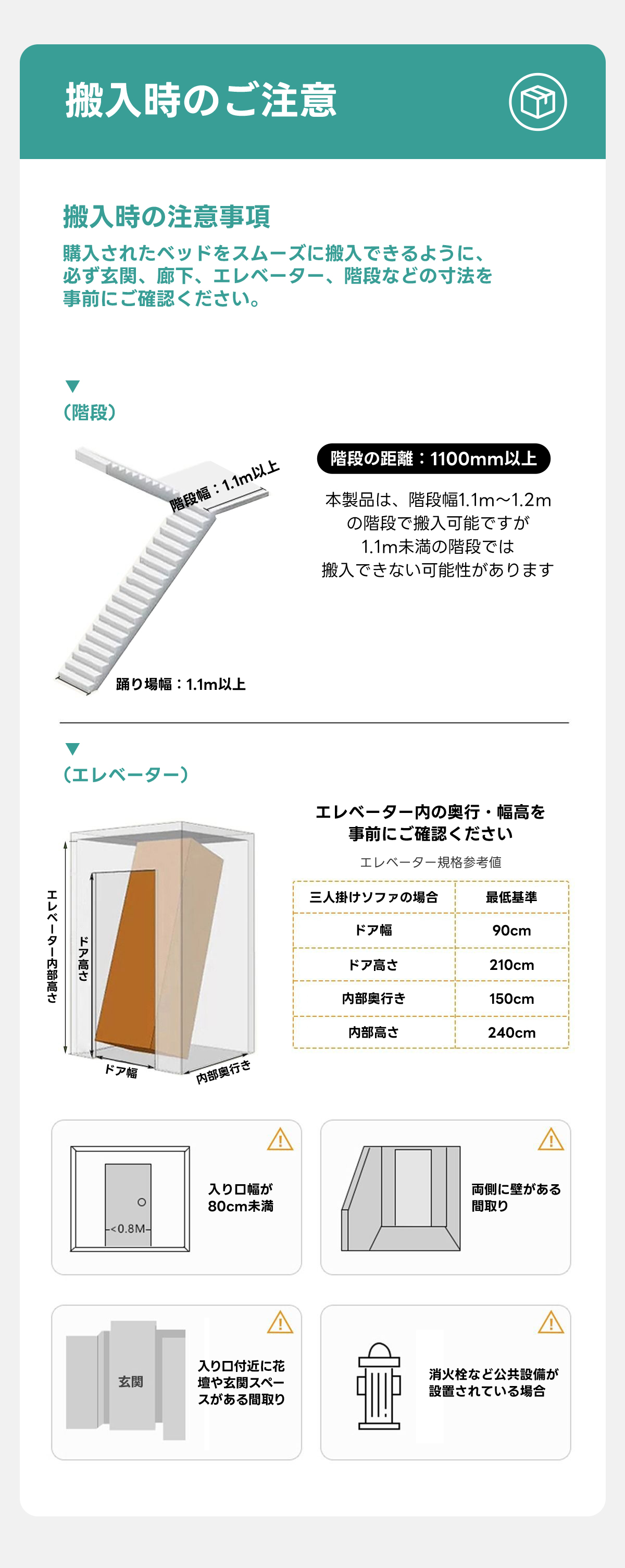 ※搬入不可等の理由による注文キャンセルは、ご返送にかかる費用をお客様にご請求いたします。ご注文前に大型家具の搬入方法をご確認ください。