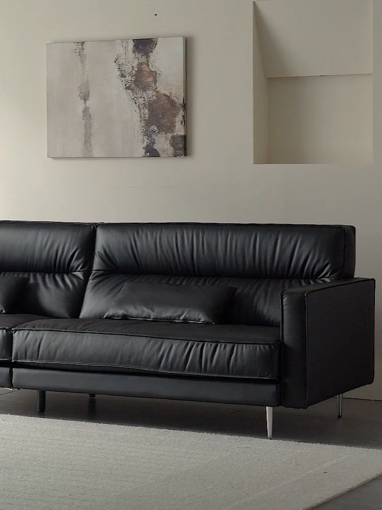 Woody Aura本革ブラックソファ【カスタマイズ可】