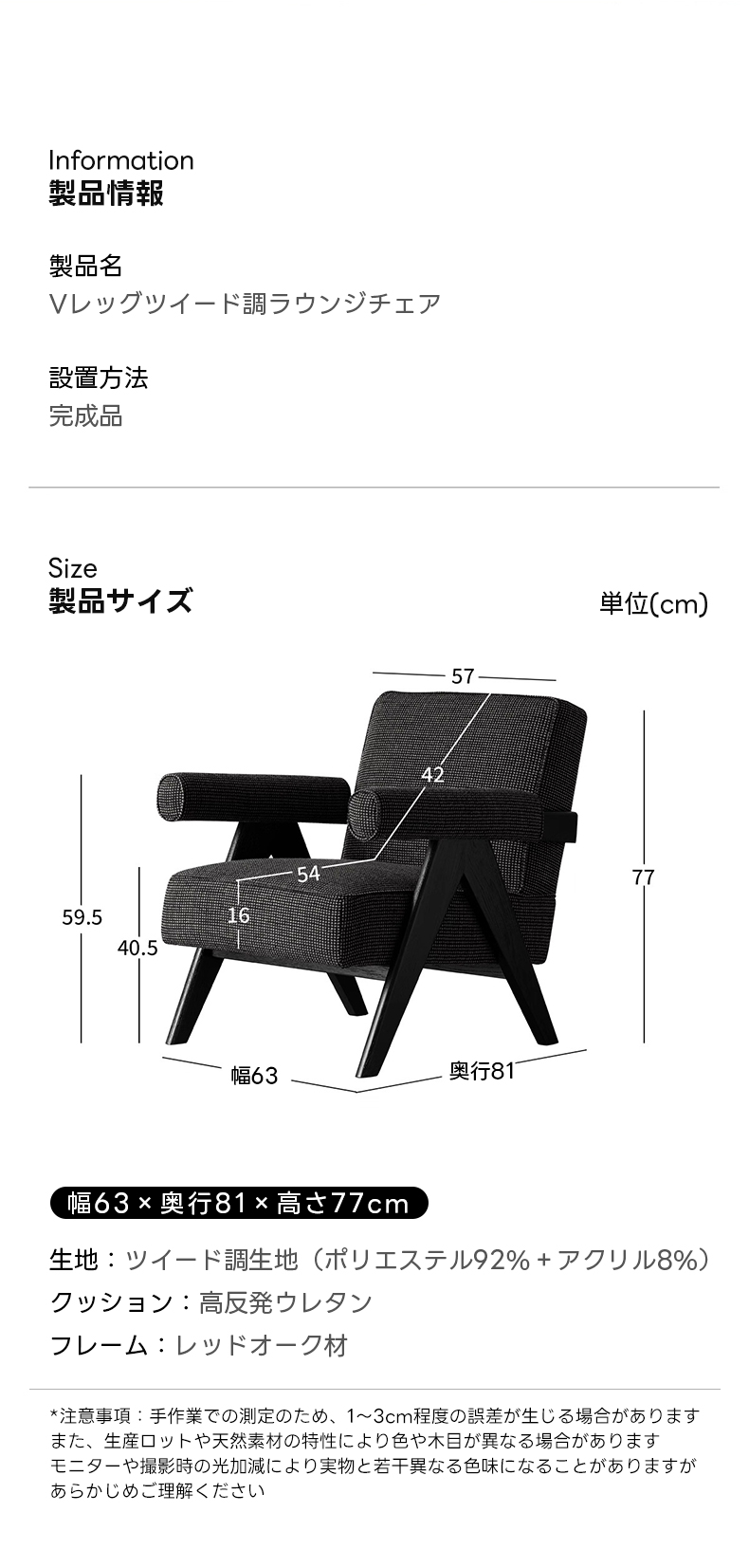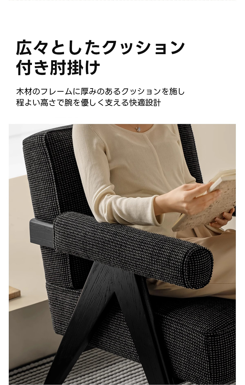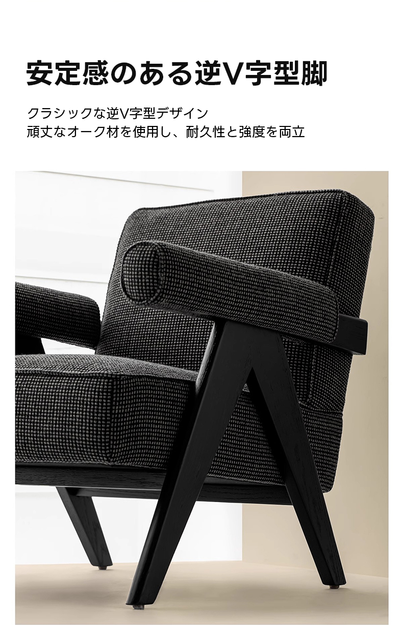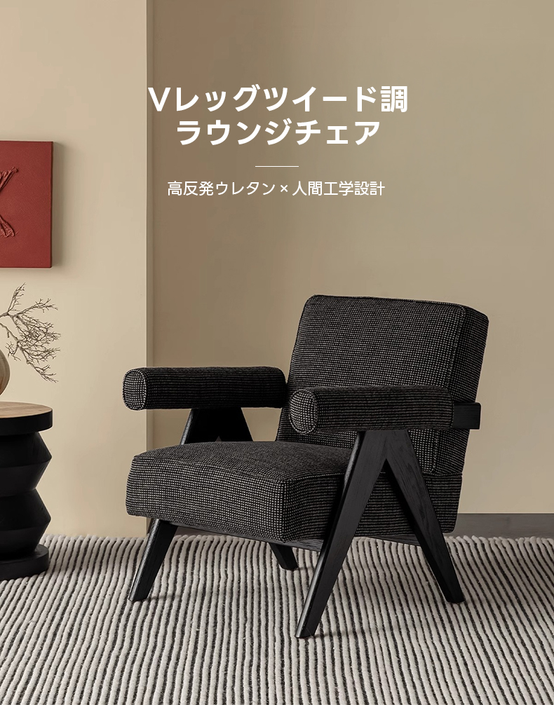 - 【快適な座り心地を実現するVレッグツイード調ラウンジチェア】高反発ウレタンを使用したクッションで長時間座ってもへたりにくく、快適な座り心地を提供します。逆V字型の脚デザインにより安定感も抜群です。