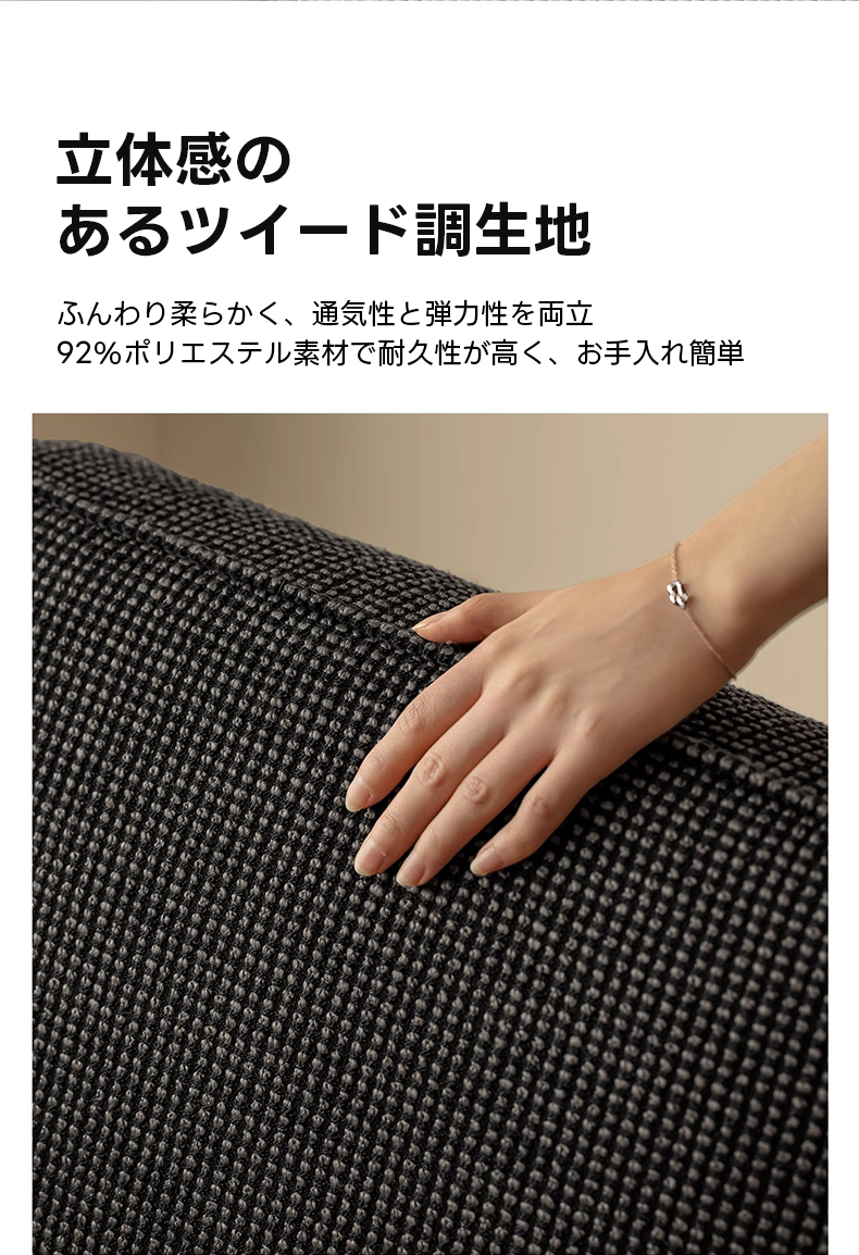 - 【高品質な素材とシンプルモダンなデザイン】ツイード調の生地は92%ポリエステルと8%アクリルで構成され、耐久性が高く、柔らかな肌触りを提供。フレームには頑丈なレッドオーク材を使用しています。