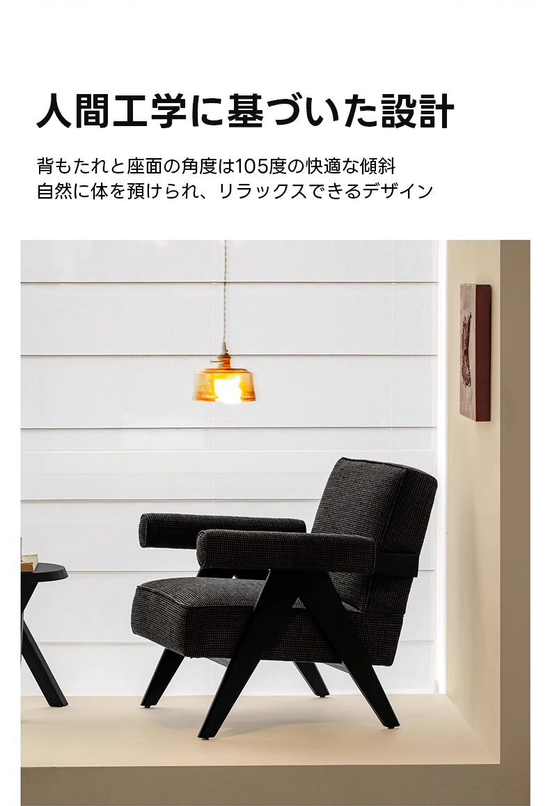 - 【人間工学に基づいた設計でリラックス】背もたれと座面の角度は105度の快適な傾斜で、自然に体を預けられ、リラックスできるデザイン。ブラックカラーはどんなインテリアにも調和しやすいです。