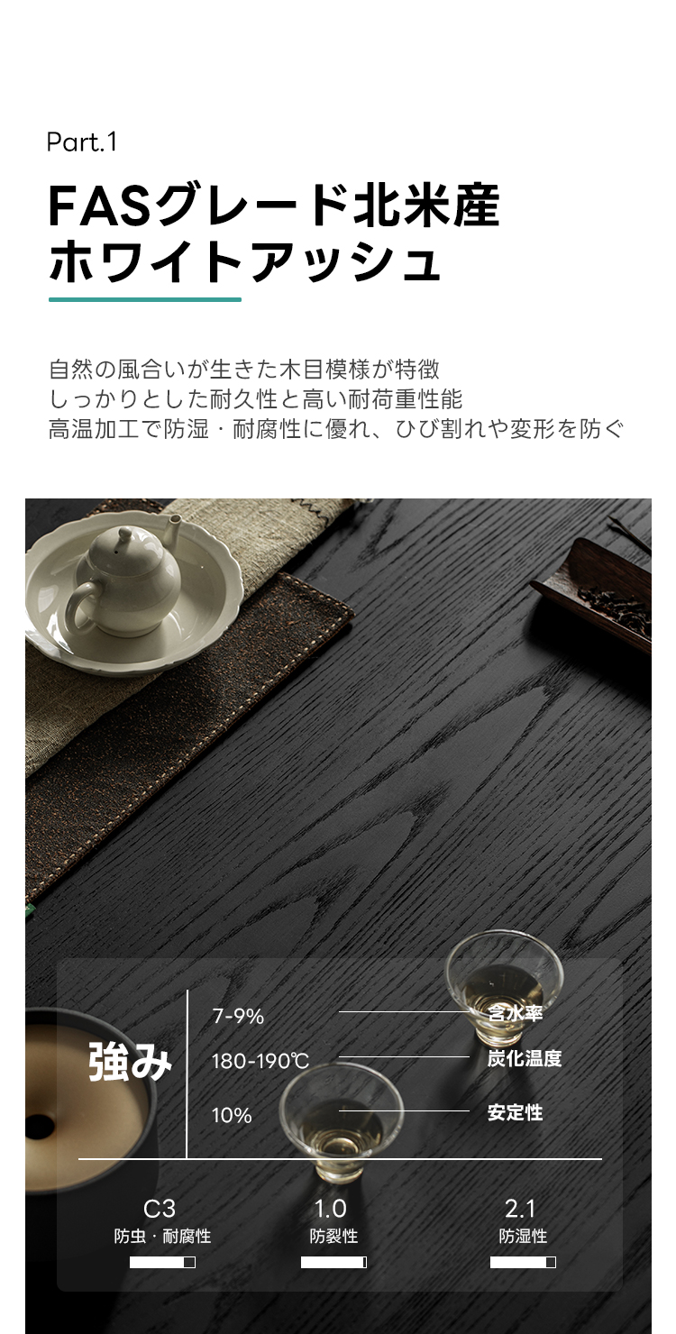 - 【高品質な素材と優れた耐久性】:FASグレードの北米産ホワイトアッシュ材を使用し、自然な木目が美しいだけでなく、耐久性と耐荷重性能に優れています。防湿・耐腐性があり、ひび割れや変形を防ぎます。