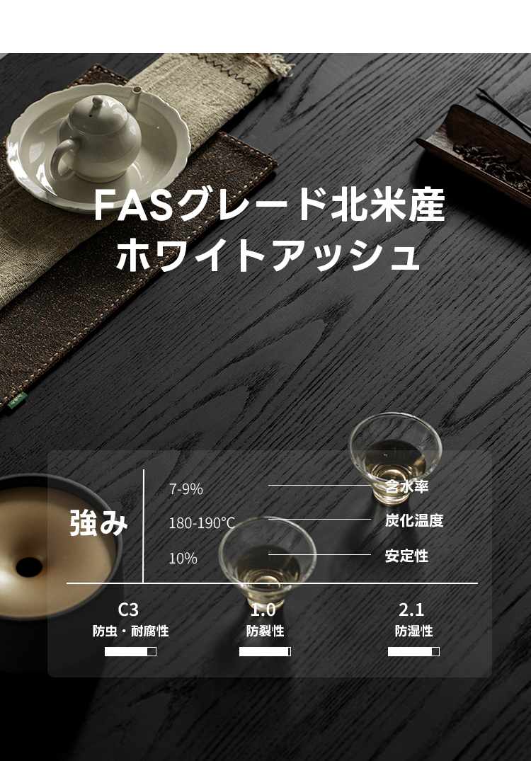 - 【高品質素材とデザイン】北米産FASグレードホワイトアッシュ材を使用し、耐久性と美しい仕上がりを実現。ブラックカラーが高級感を引き立てます。