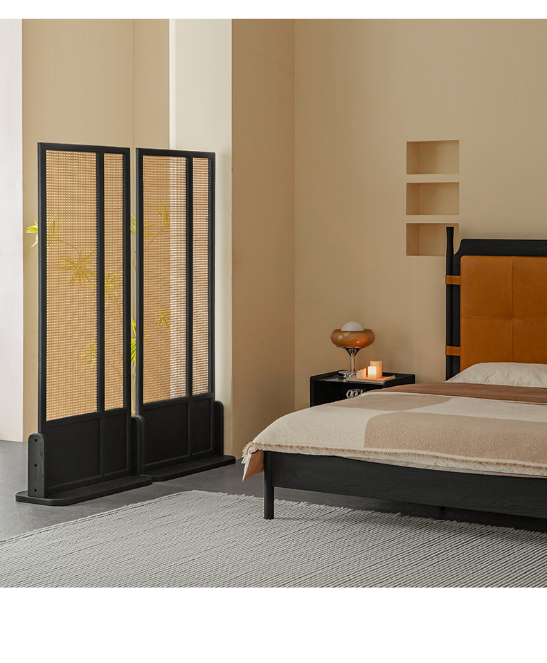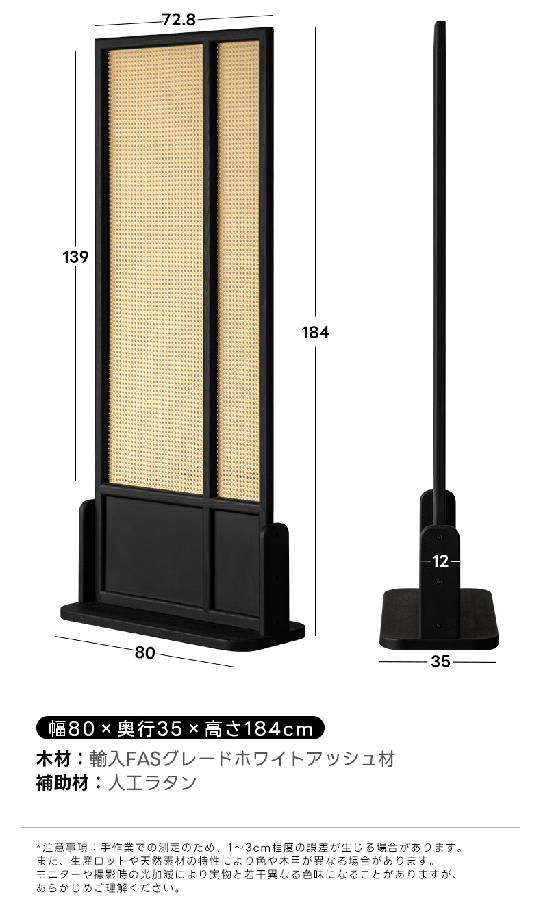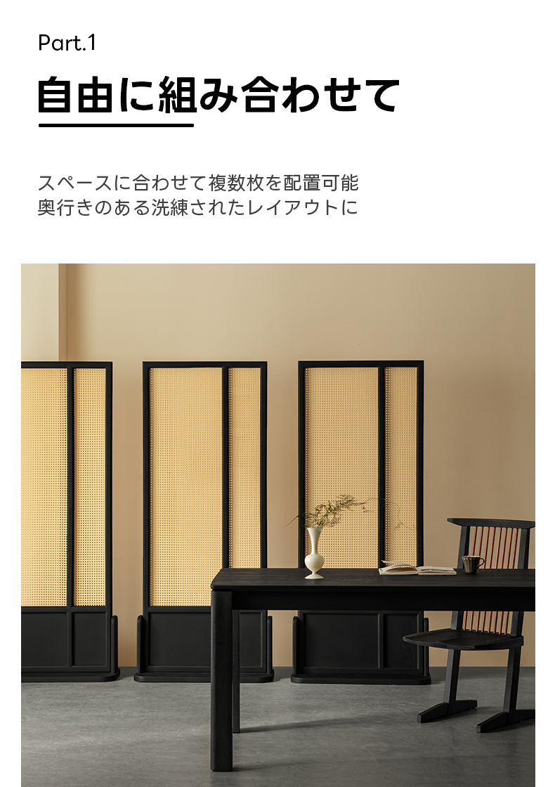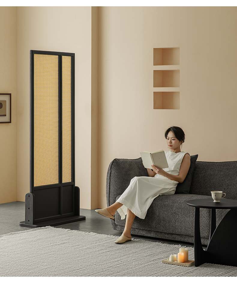 - 【高級感あふれるデザイン】ホワイトアッシュ材を使用したラタン調パーティションは、高級感と自然な風合いを兼ね備えています。手編みのラタン風編み目が空間に柔らかさと温かみを与えます。