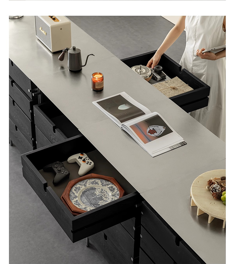 - 【両面引き出し機能】すべての引き出しは両方向から引き出せるため、スペースや用途に合わせた柔軟な使い方が可能です。リビングやダイニング、オフィスなど、さまざまなシーンで活躍します。