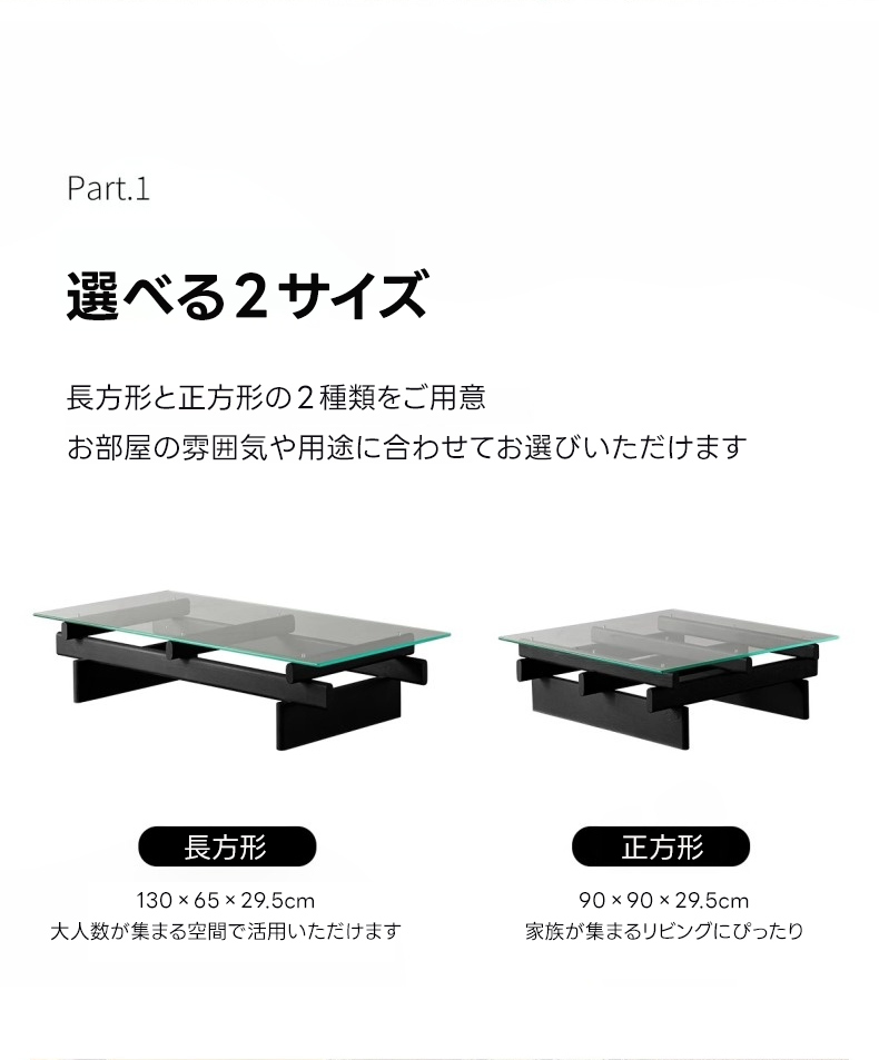 - 【多様な適用シーン】カップルやファミリー、一人暮らしの方に最適なこのテーブルは、リビングやダイニングなど様々なシーンで活躍します。正方形と長方形の2種類のサイズから選べるため、お部屋のレイアウトに合わせてお使いいただけます。