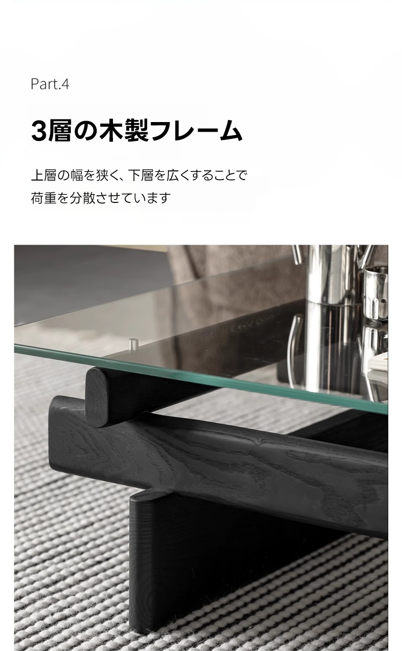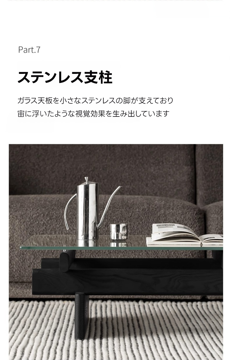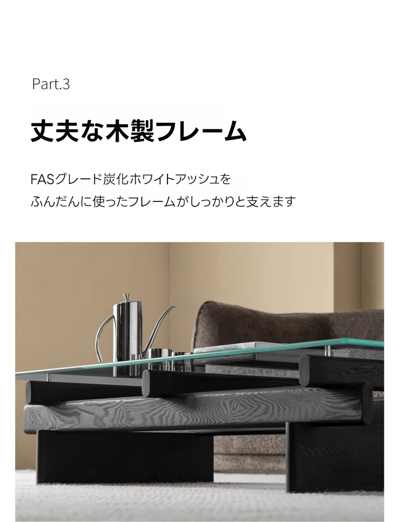 - 【高品質な素材と設計】FASグレードのホワイトアッシュ材を使用し、耐久性と美しい仕上がりを実現。ガラス天板は高透過強化ガラスを採用し、耐衝撃性と耐熱性に優れています。ステンレス支柱がガラス天板を支え、浮遊感のある視覚効果を生み出します。