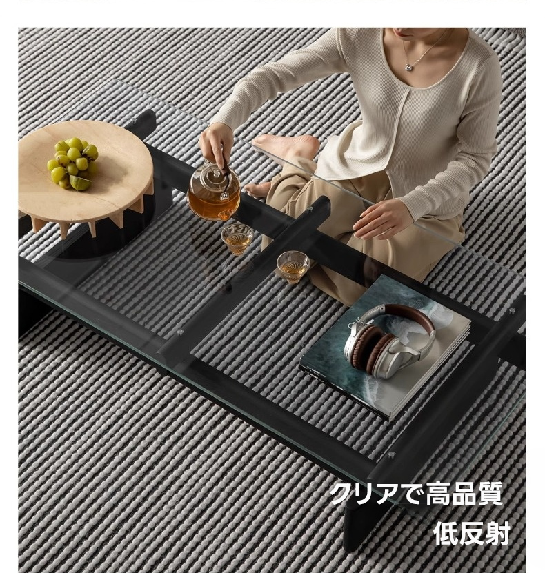 - 【シンプルモダンなデザイン】このローテーブルはシンプルモダンなデザインで、どんなインテリアにもマッチします。ガラス天板とホワイトアッシュ材の組み合わせが、リビングに洗練された雰囲気を演出します。