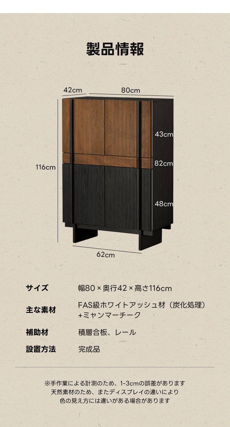 - 【快適な使用体験】:このキャビネットは完成品としてお届けされるため、手間いらずで設置が可能です。耐久性に優れた素材とデザインで、長く使用してもその美しさを保ち、あなたの生活空間をより豊かに彩ります。