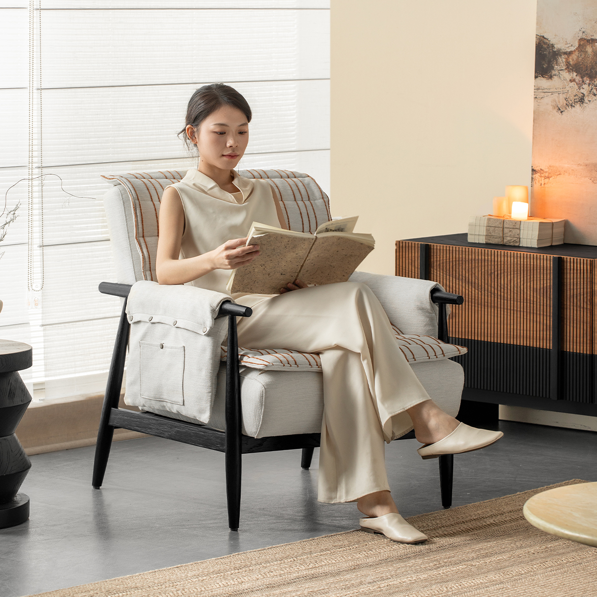 - 【高品質な素材とデザイン】:ウールとリネンを織り込んだ生地は肌触りが良く、季節を問わず快適に使用できます。フレームには耐久性と安定感を兼ね備えたレッドオーク材を使用し、長くご愛用いただけます。