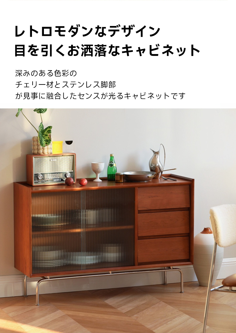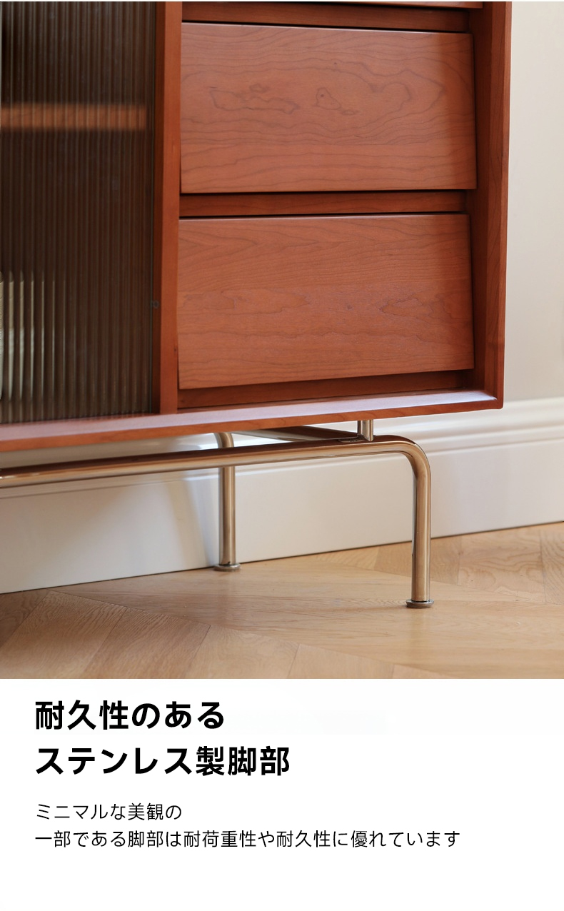 - 【高品質な素材とデザイン】ライトブラウンのチェリー材を使用し、北米FASグレードの高品質な素材で作られています。耐久性のあるステンレス製脚部が、長く安心してお使いいただける耐荷重性を提供。レトロモダンなデザインで、深みのある色彩とステンレスの脚部が調和しています。