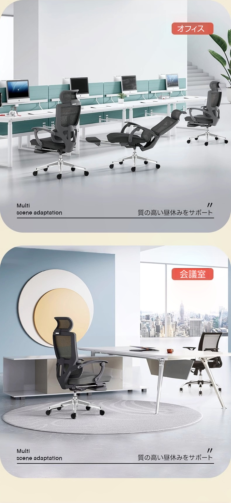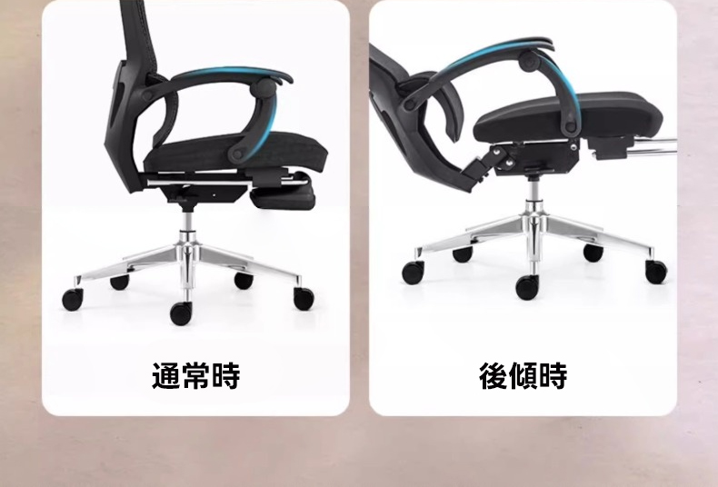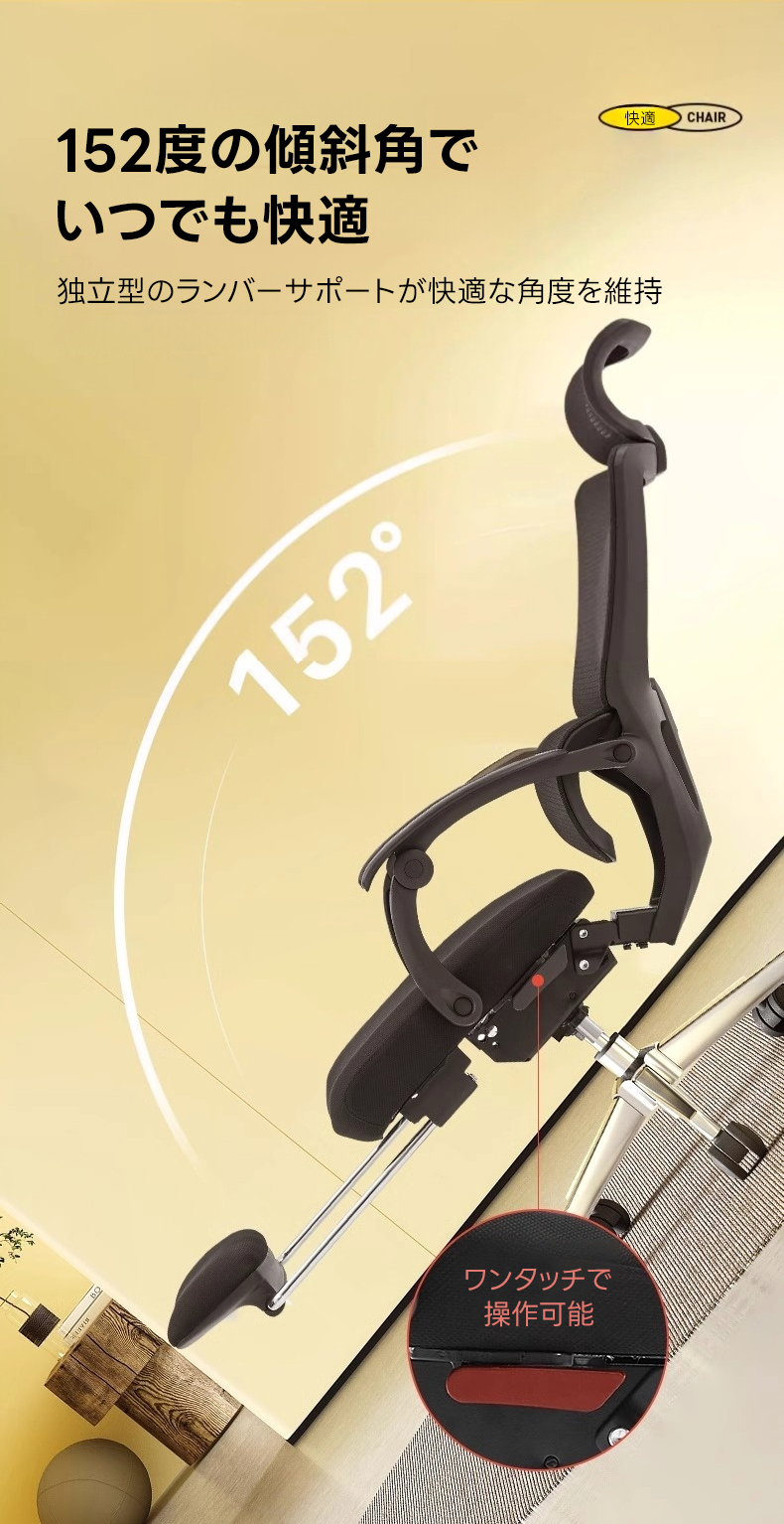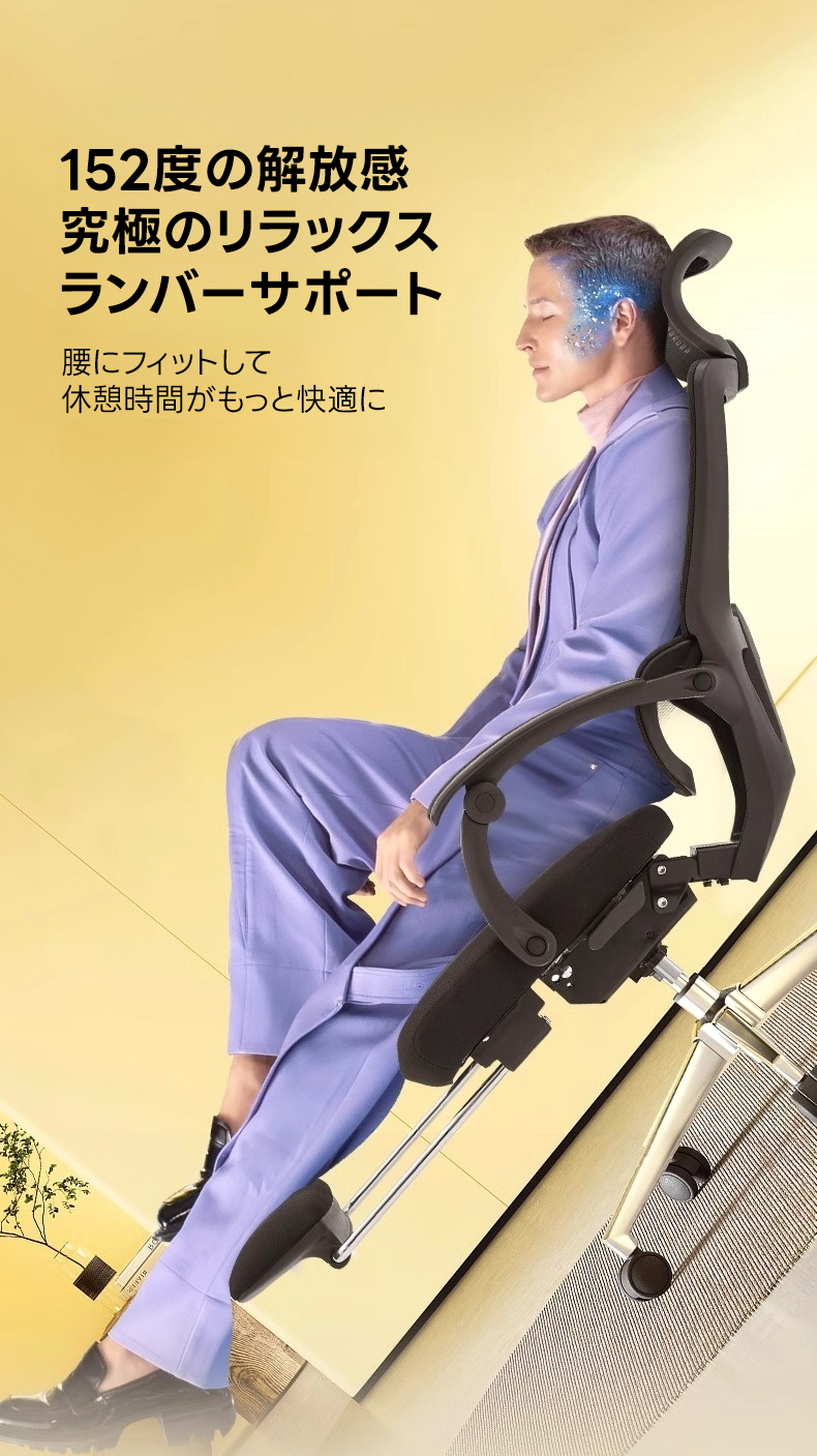 - 【リクライニング機能で快適な休憩】最大152度までリクライニング可能なデスクチェアで、ワンタッチでリラックスモードに移行できます。長時間の作業の合間に快適な休憩を提供します。