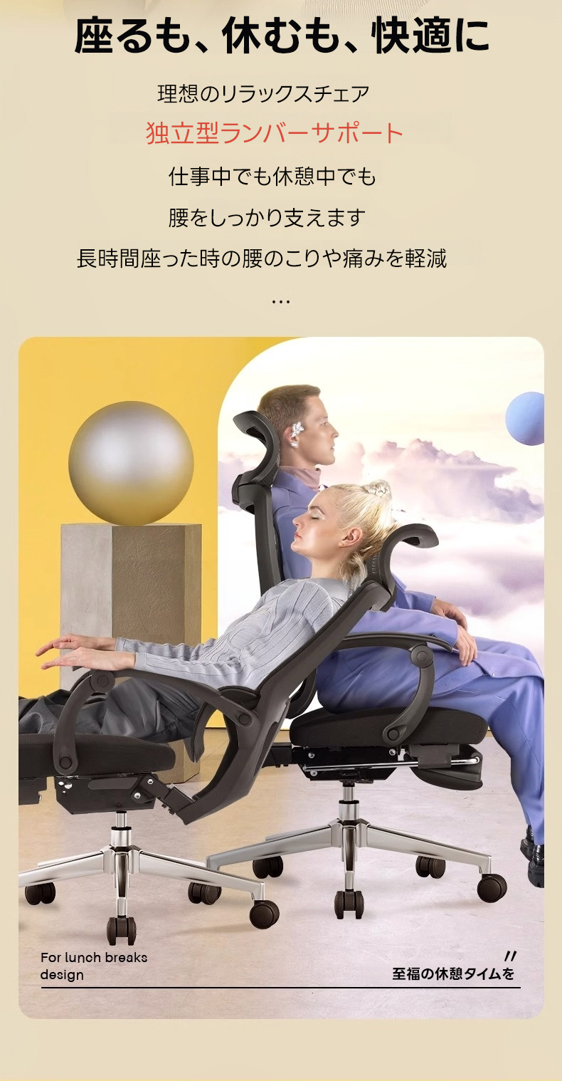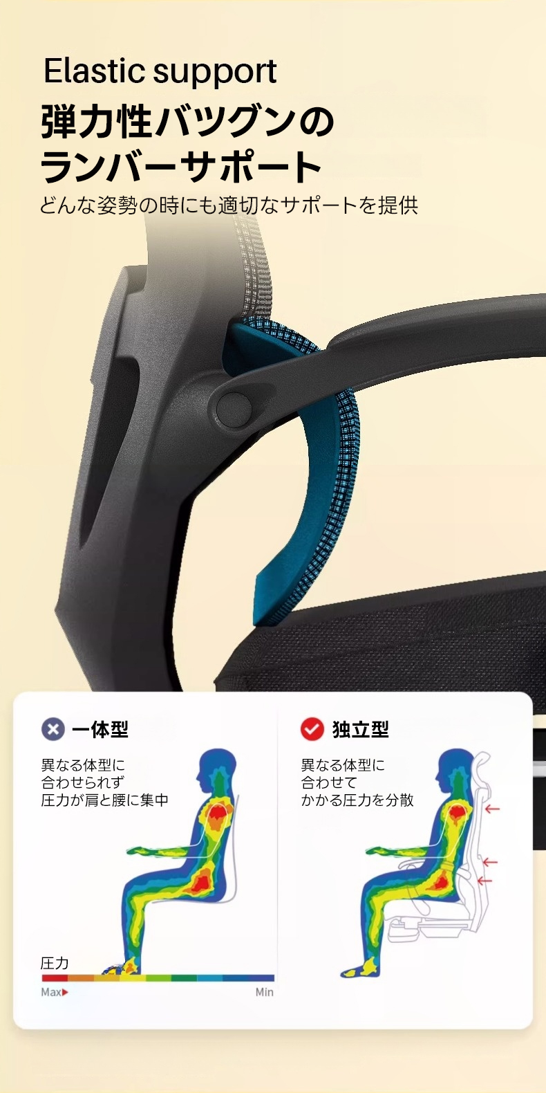 - 【快適な座り心地を提供】独立型ランバーサポートとワイドヘッドレストが腰と首をしっかりサポートし、長時間の使用でも快適な座り心地を提供します。