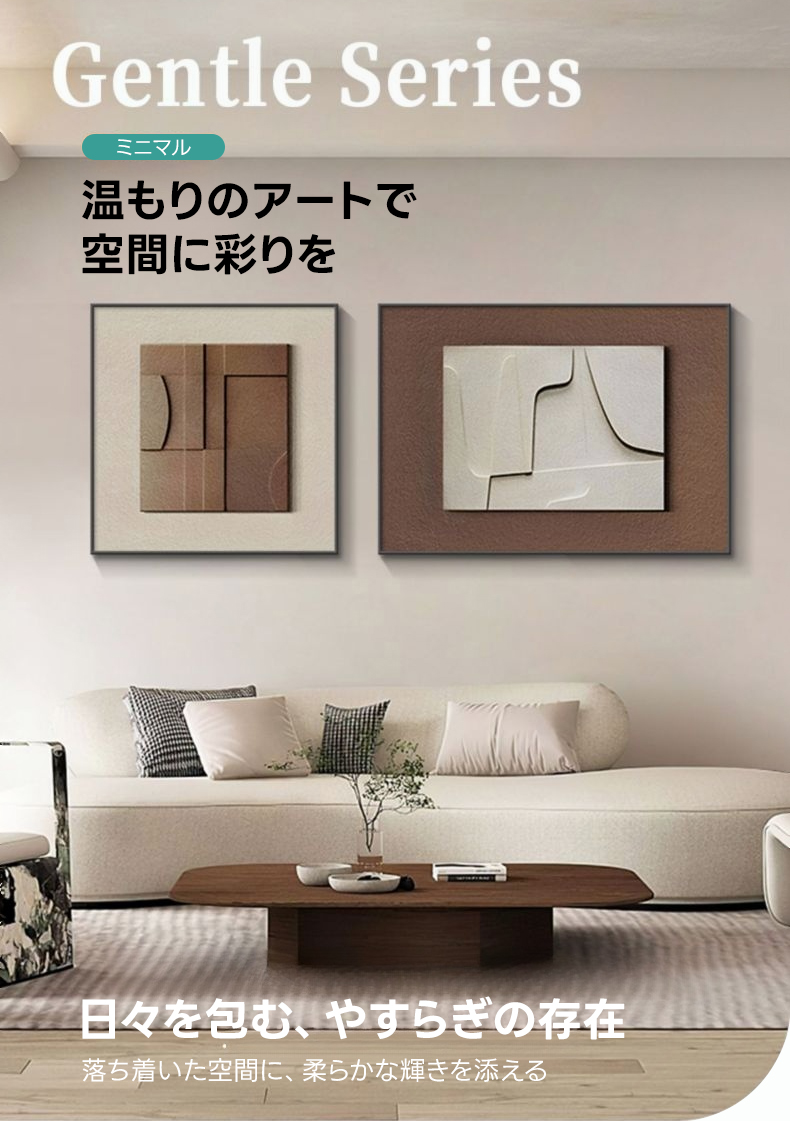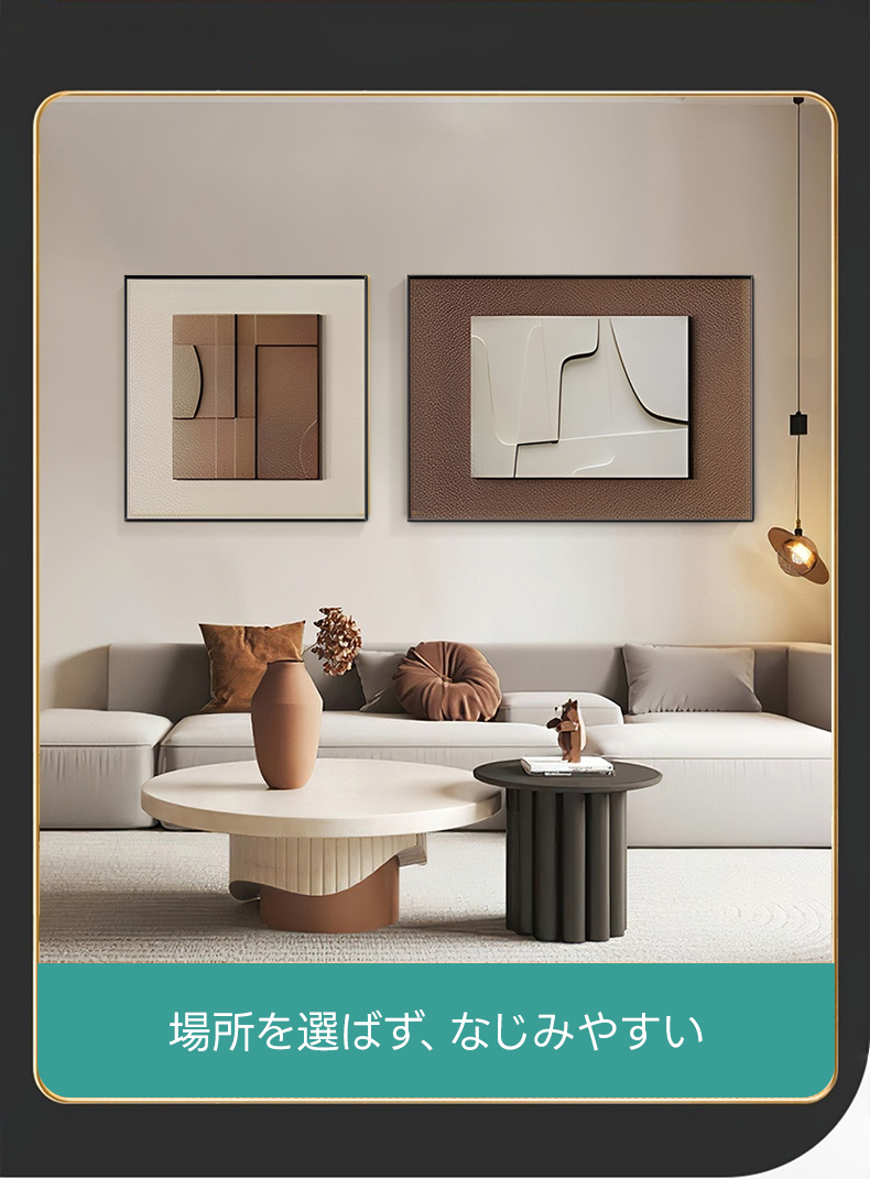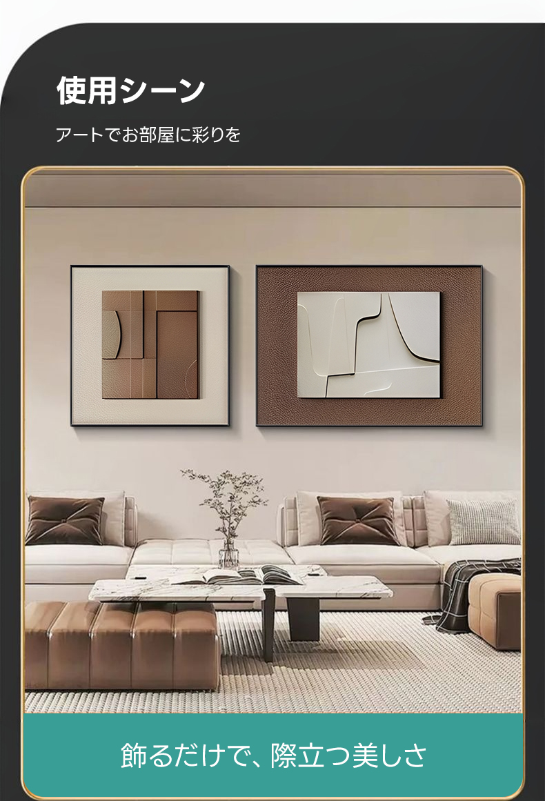 - 【シンプルモダンデザイン】ミラージュアングルアートパネルは、どんな空間にも自然に溶け込むシンプルモダンなデザインが特徴です。ブラウンの落ち着いた色合いが、和室やリビング、寝室、書斎に温もりと上質な存在感をもたらします。