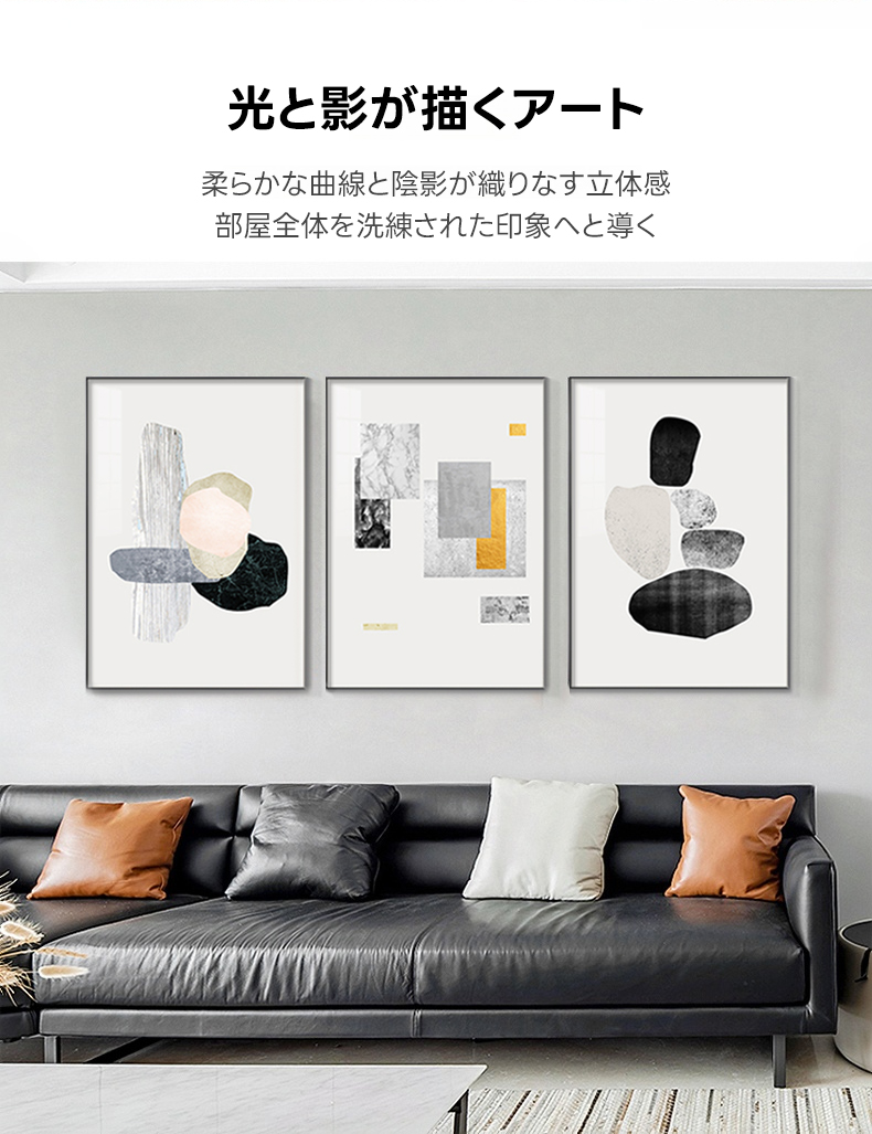 - 【シンプルモダンなデザイン】ゴールドアクセントを施したモダンアートパネルは、ジオメトリックなパターンでシンプルながらも高級感を演出します。どんなインテリアにも溶け込み、リビングや寝室、書斎など様々な空間に洗練された印象を与えます。