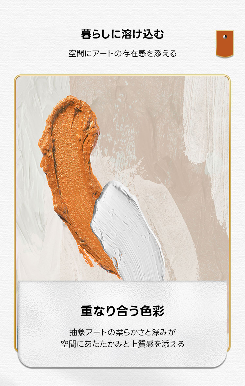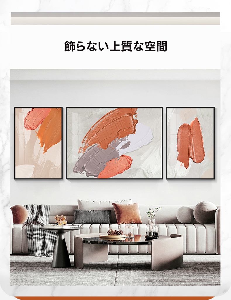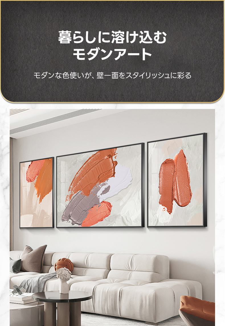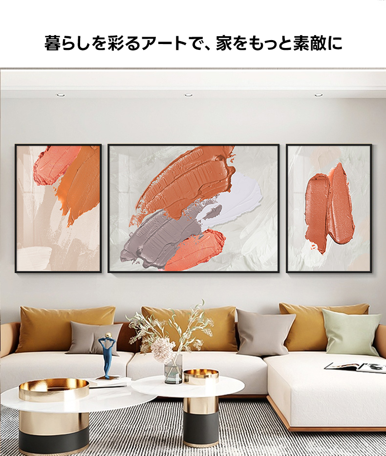 - 【モダンデザインと高精細アート】このモダンペイントアートフレームは、北欧デザインを取り入れた洗練されたアート作品です。オレンジを基調とした抽象的な色彩が、空間に温かみを与え、どんなインテリアにも調和します。