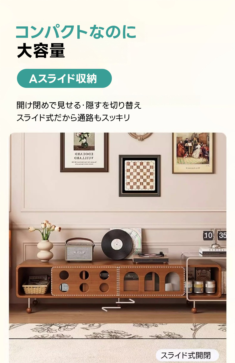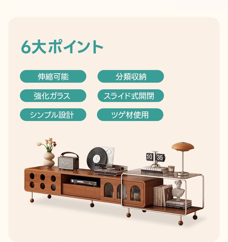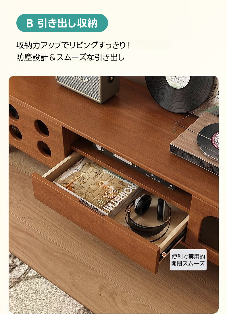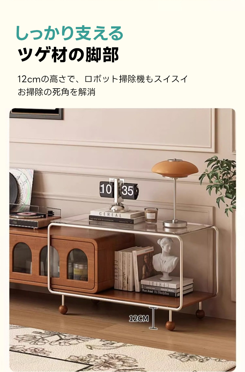 - 【多様な収納オプション】スライド式と引き出し式の収納スペースを備え、リモコンや雑誌などをすっきりと整理できます。ガラス天板収納はディスプレイスペースとしても利用可能で、インテリアをより魅力的に演出します。