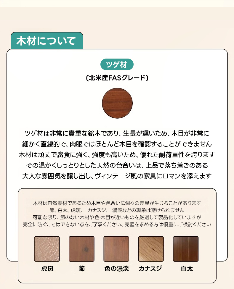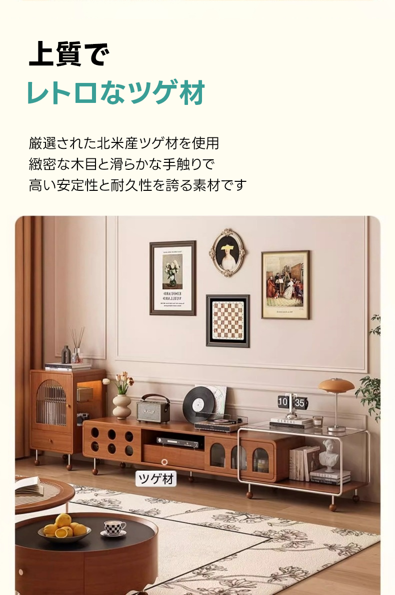 - 【高品質な素材とデザイン】北米産FASグレードのツゲ材と強化ガラス、ステンレスを使用し、耐荷重性と防腐性能に優れています。ヴィンテージスタイルのデザインがリビングルームに落ち着きと上品さをプラスします。