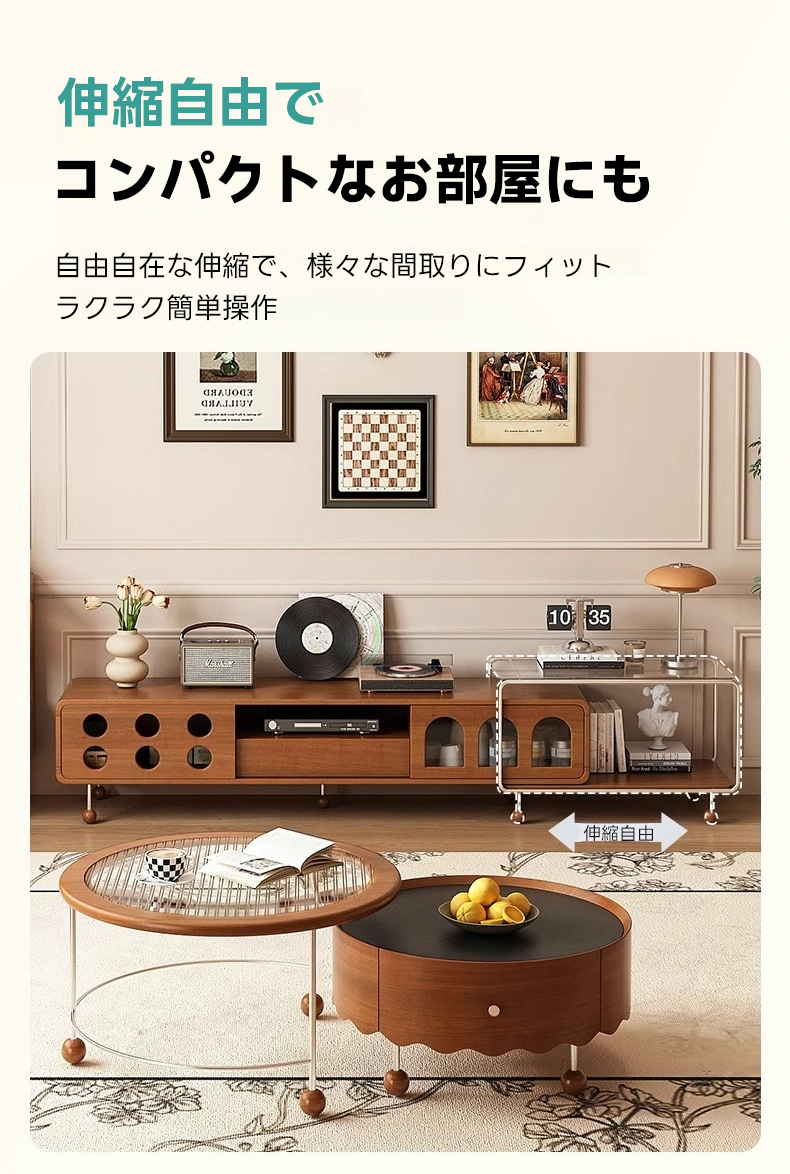 - 【自由自在な伸縮機能】このテレビ台は伸縮可能な設計で、さまざまなスペースに合わせてサイズを調整できます。リビングルームのレイアウトに柔軟に対応し、スペースを最大限に活用できます。