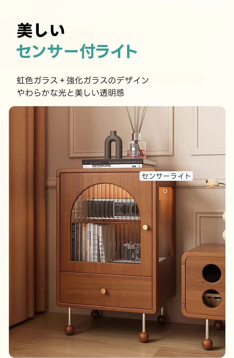 - 【スマートな配線管理】配線用スリットが設けられており、ケーブル類をすっきりと整理できます。センサー付ライトが虹色ガラスを通して柔らかな光を提供し、リラックスした雰囲気を演出します。
