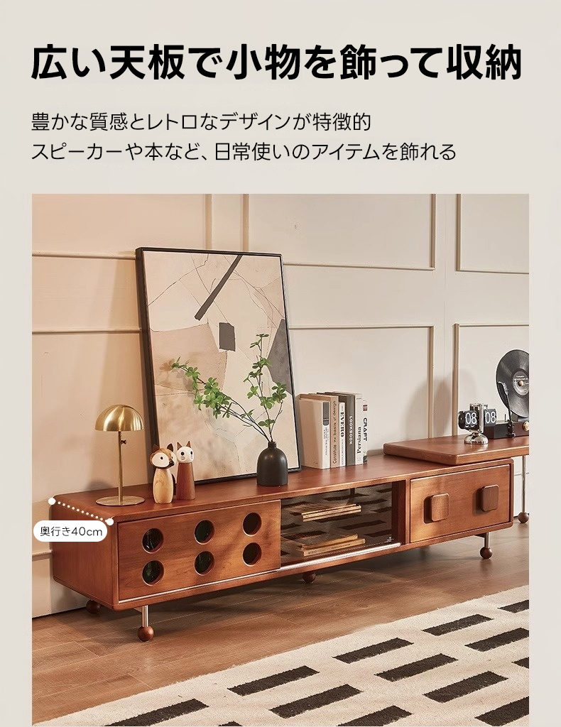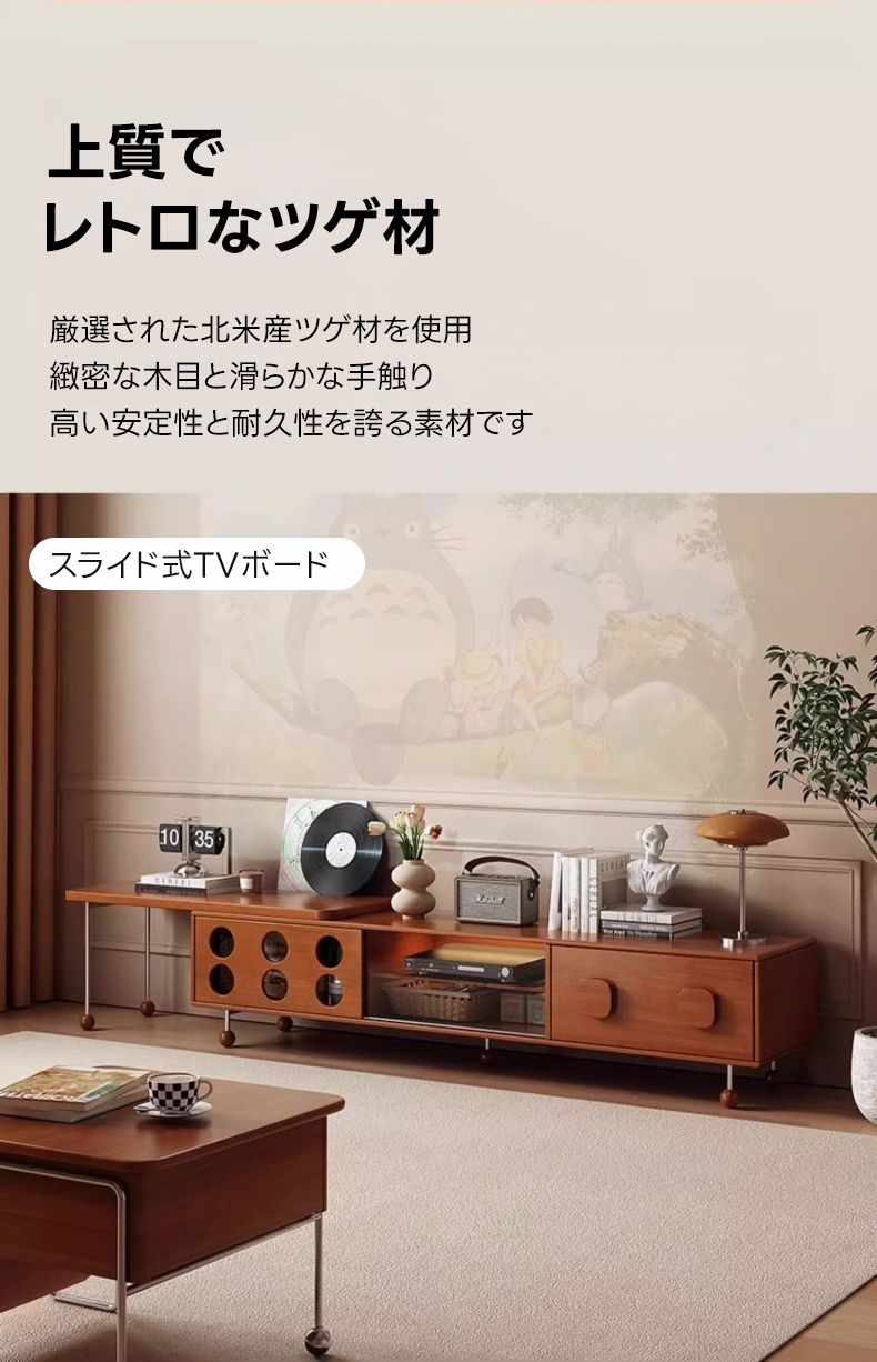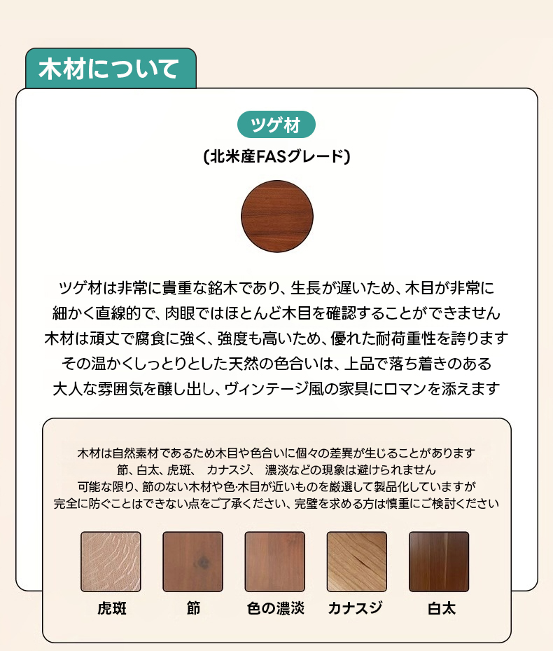 - 【高品質なツゲ材使用】北米産FASグレードのツゲ材を使用し、耐久性と防腐性に優れた高級感あふれるデザインです。ヴィンテージ感のある仕上げが、リビングに温かみと落ち着きをもたらします。
