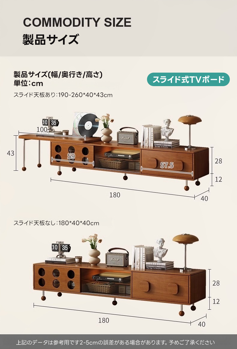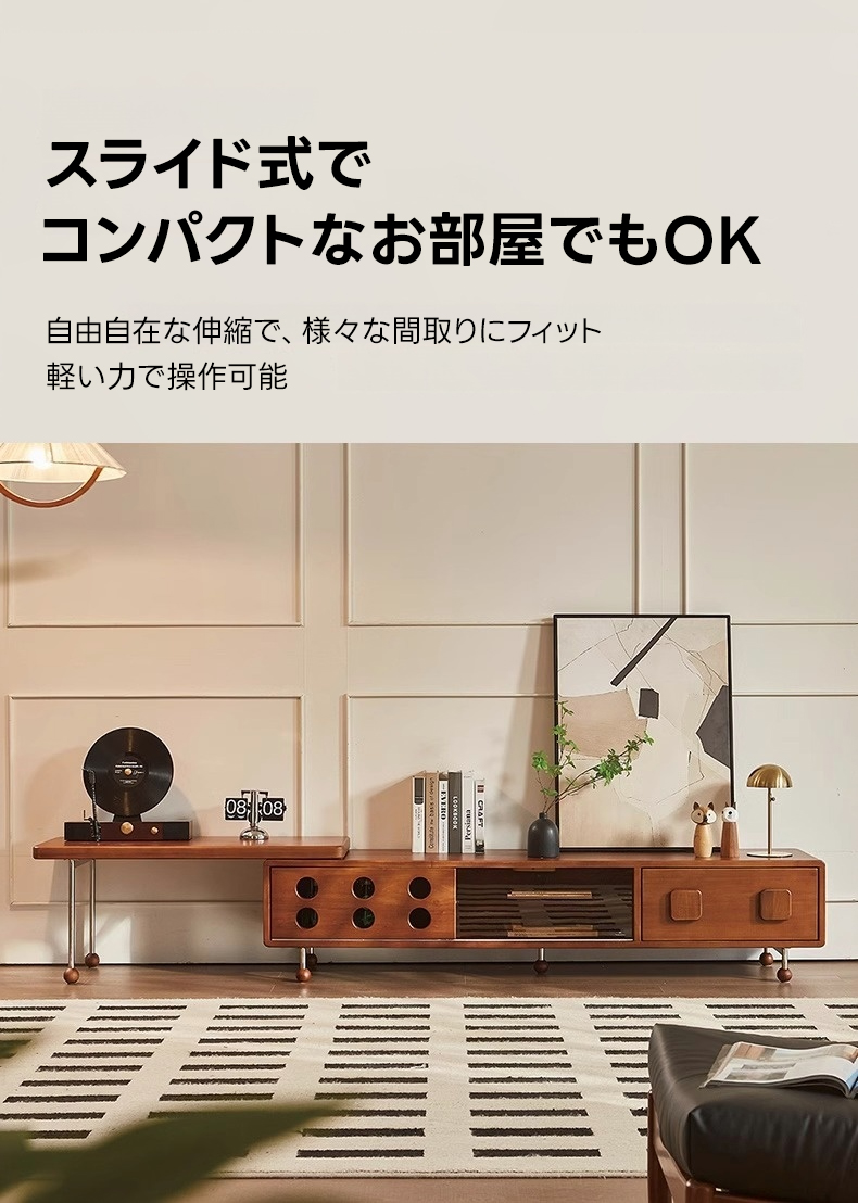 - 【調整可能なスライド天板】このテレビボードは、190cmから260cmまで伸縮可能なスライド天板を備えており、部屋のサイズや配置に合わせて自由に調整できます。左右どちらにも取り付け可能で、配置の自由度が高く、リビングのスペースを有効活用できます。