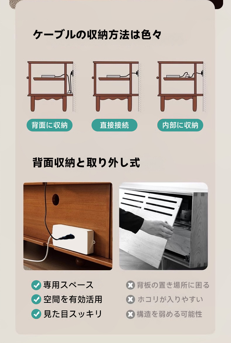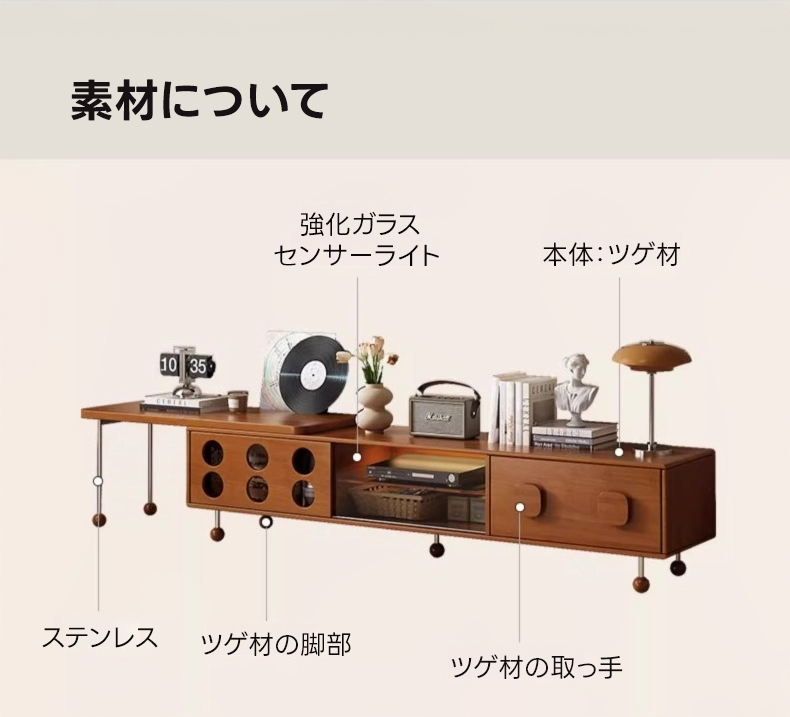 - 【大容量収納スペース】「2+1」の収納スペースを備えたこのテレビボードは、分類収納が簡単で、引き出しも大容量です。日常のアイテムをすっきりと収納でき、リビングを整理整頓された空間に保ちます。
