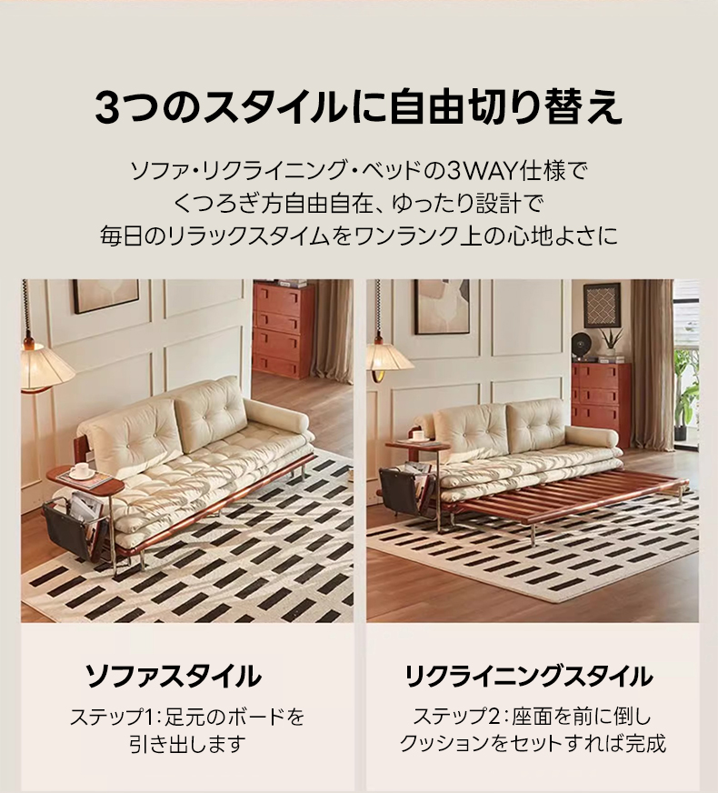 - 【多機能3WAY仕様】このソファベッドは、ソファ、リクライニング、ベッドの3つのスタイルに簡単に切り替え可能です。日常のリラックスタイムをより快適に過ごせます。リビングや寝室、書斎など様々な空間にフィットし、あらゆるシーンで活躍します。